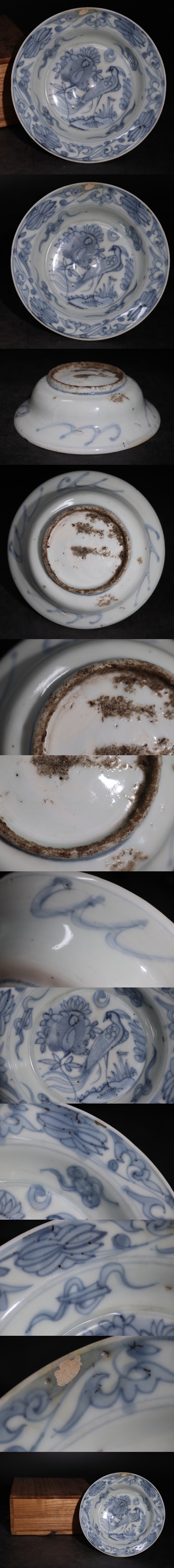 | 時代 古染付 花鳥文 鉢 木箱付 / 明 中国美術 皿 茶器 煎茶道具 煎茶飾 .G3917 |