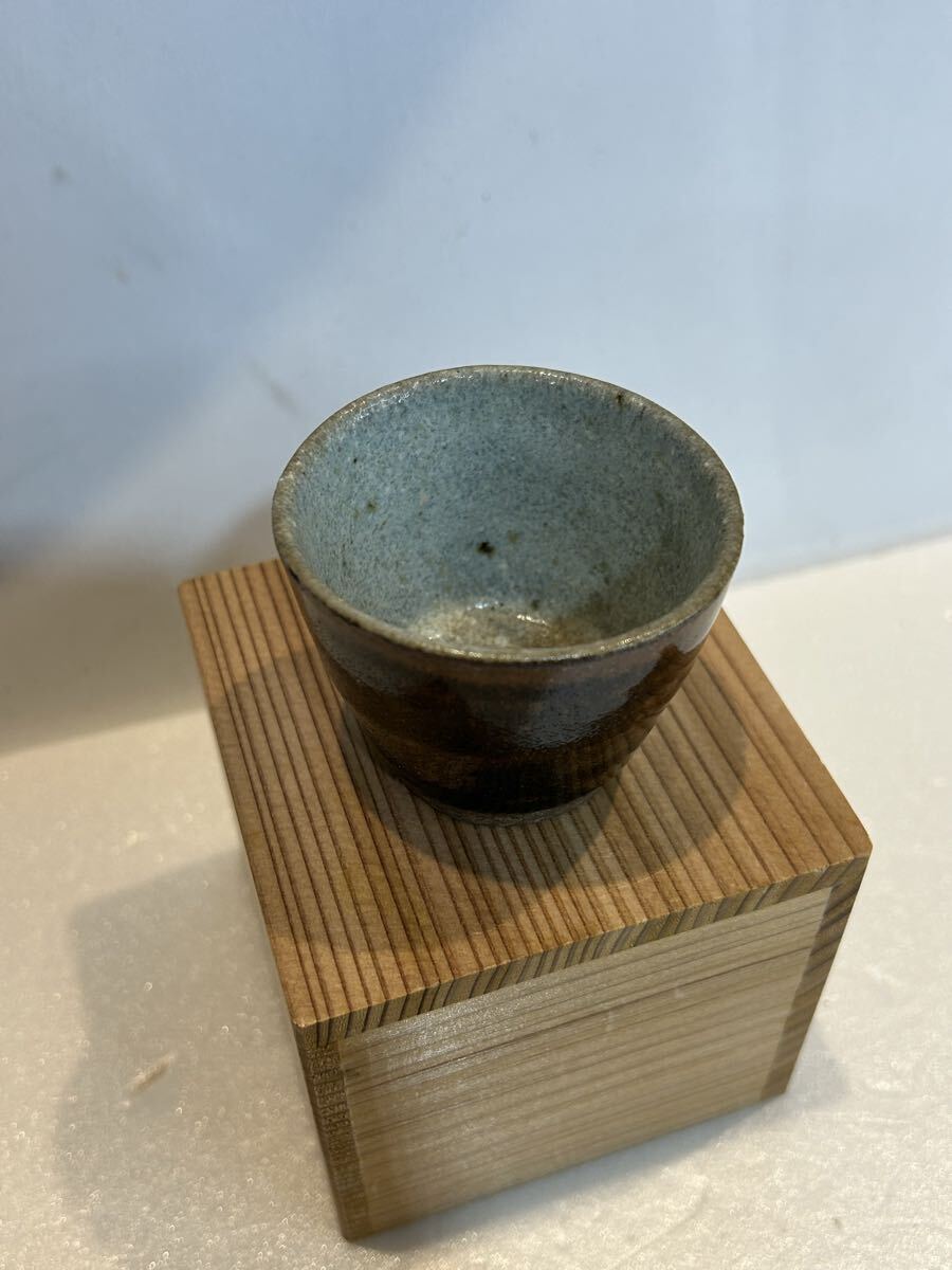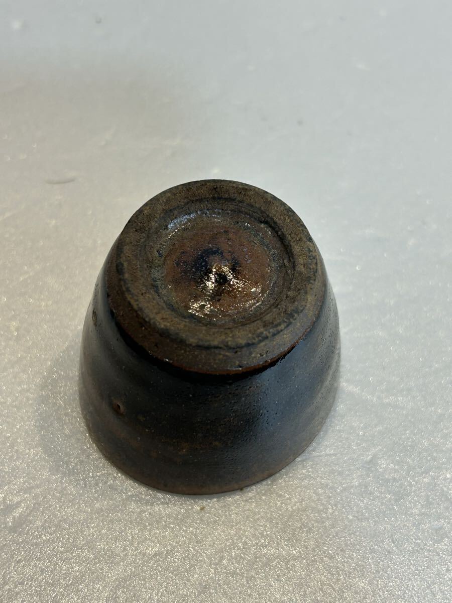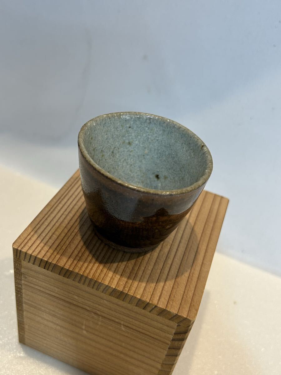 京焼の陶芸家・**岡本璋弍(おかもとしょうじ)**による黒釉ぐい呑です。