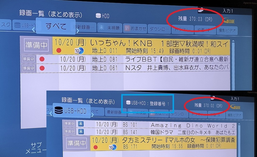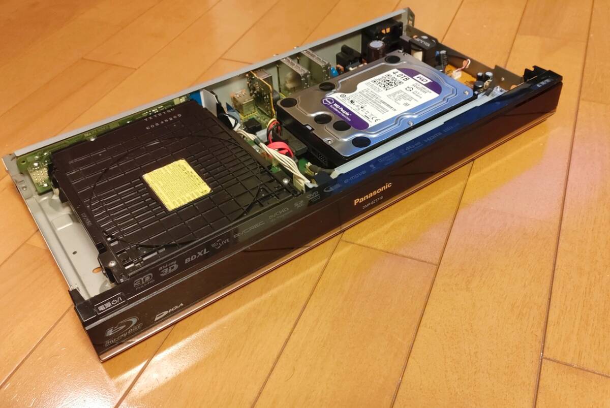 内部HDDを500GBから未使用4TB(WD40PURX)に換装しています。(DR録画約370時間)