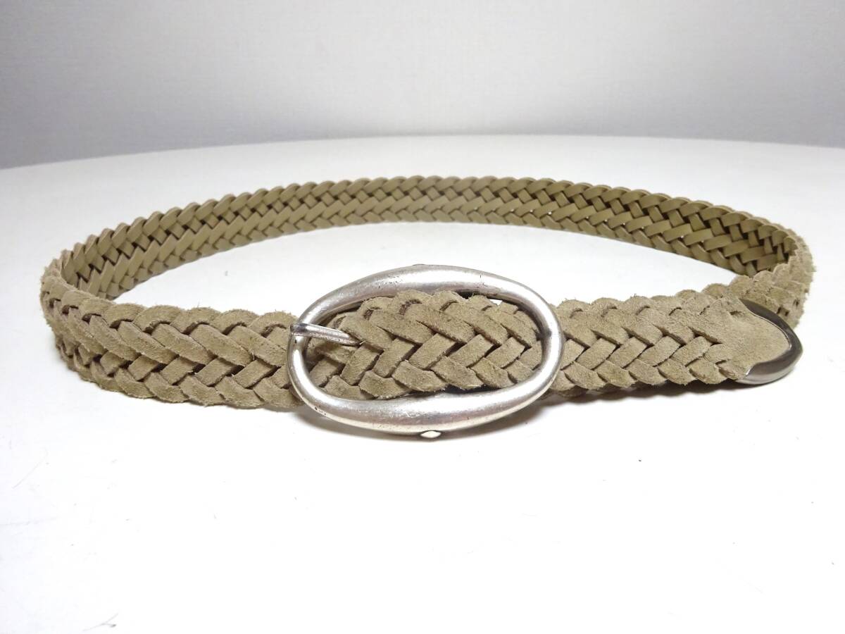 Daniel&Bob ダニエルアンドボブ スエードレザーベルト メッシュレザーベルト サンドベージュ オーバルバックル 真鍮 伊製 メンズ