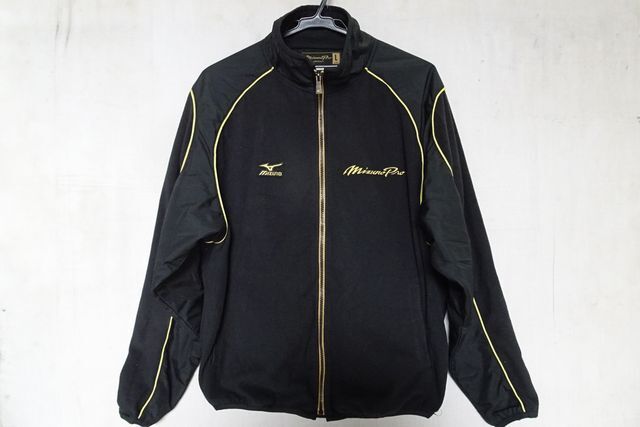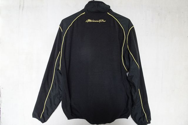 Mizuno Pro/ミズノ/長袖ジャケット/アウター/フリース素材/前ジップアップ/黄パイピング/スポーツ/黒/ブラック/Lサイズ(10/22R7)