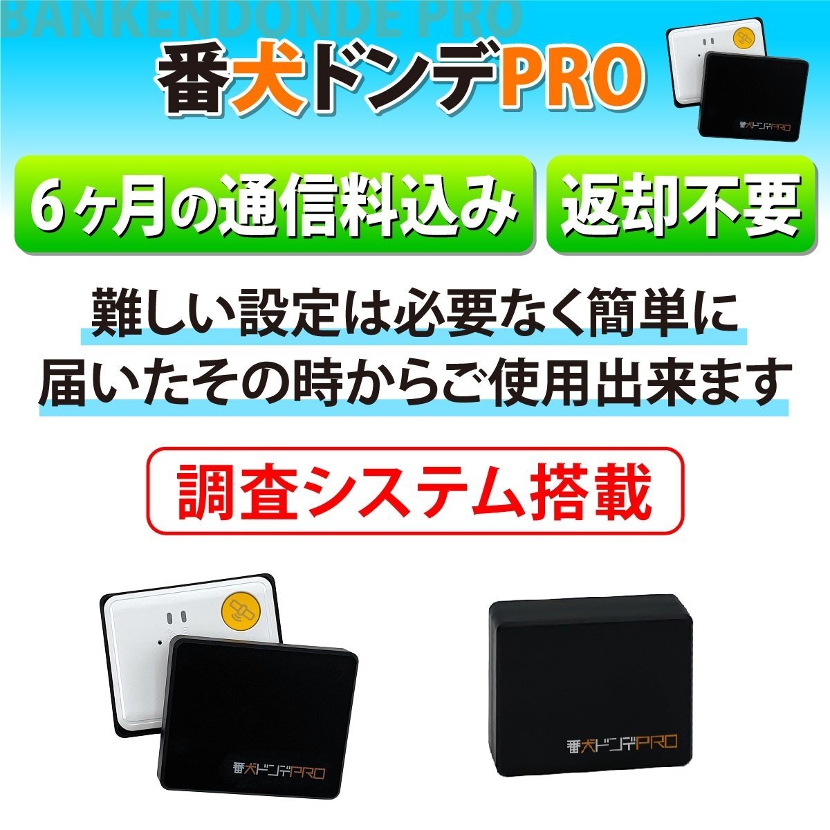良好な電波状態の場合は1日50回検索で7日ほどバッテリーが持ちますが、GPS電波や携帯電波が弱い場所では、番犬ドンデPROが必死に位置を確認する為、電池の消耗が早くなる場合もあります。