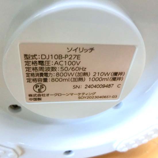 未使用品 ソイリッチ DJ-10B-P27E ショップジャパン 完全豆乳メーカー ホワイト 白 オークローンマーケティング 札幌市 西区
