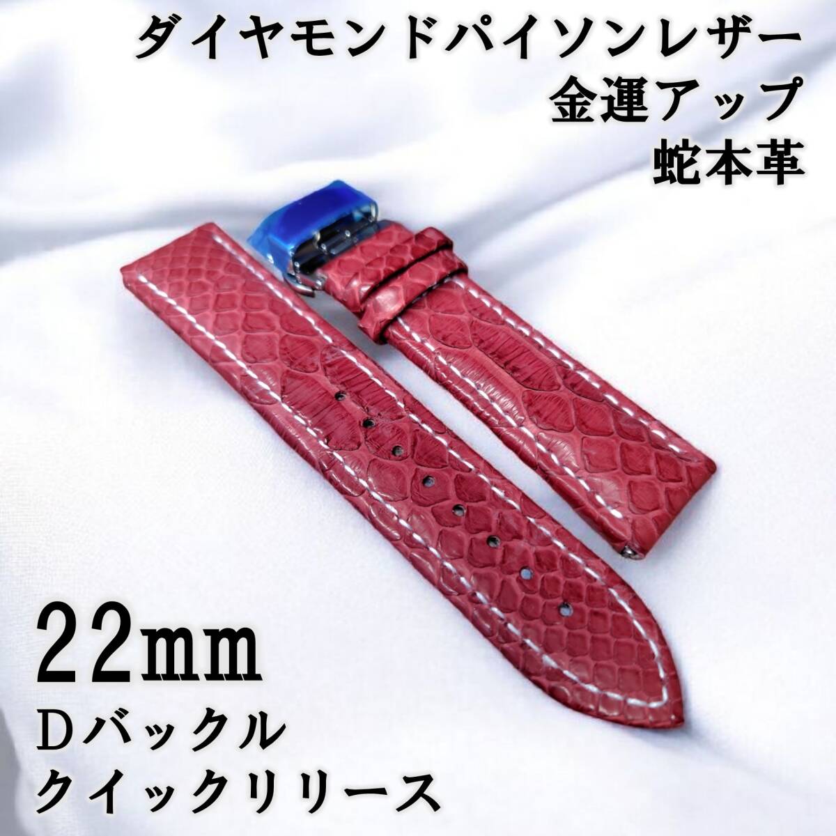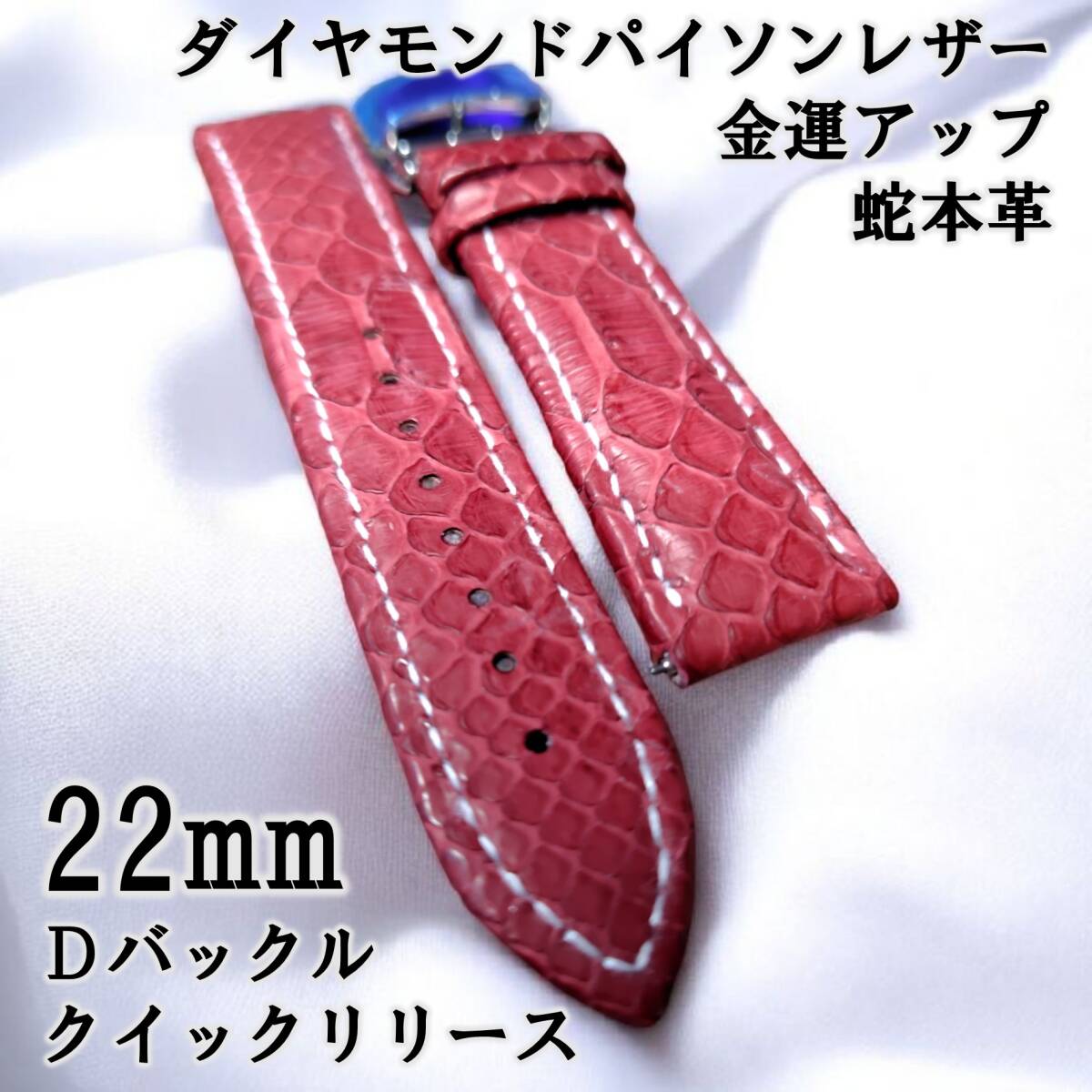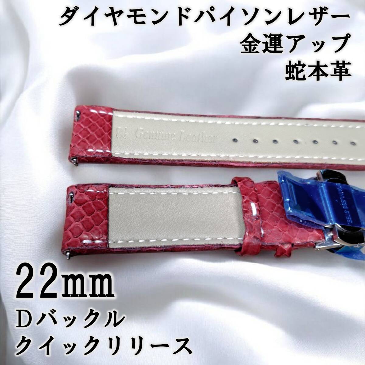腕時計 ウォッチストラップ ベルト レザーベルト ダイヤモンドパイソンレザー バンド 本革 ラグ幅 22mm ヘビ革 蛇革 パイソンレザー 金運UP