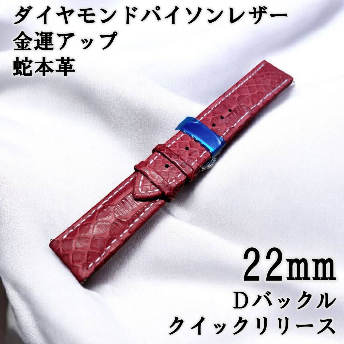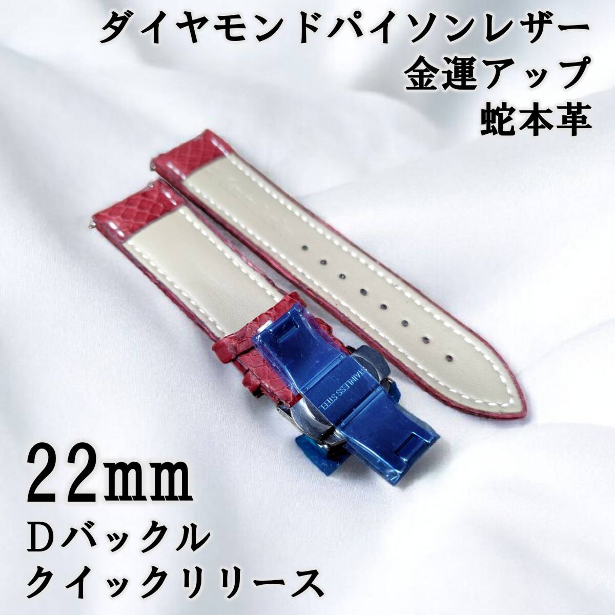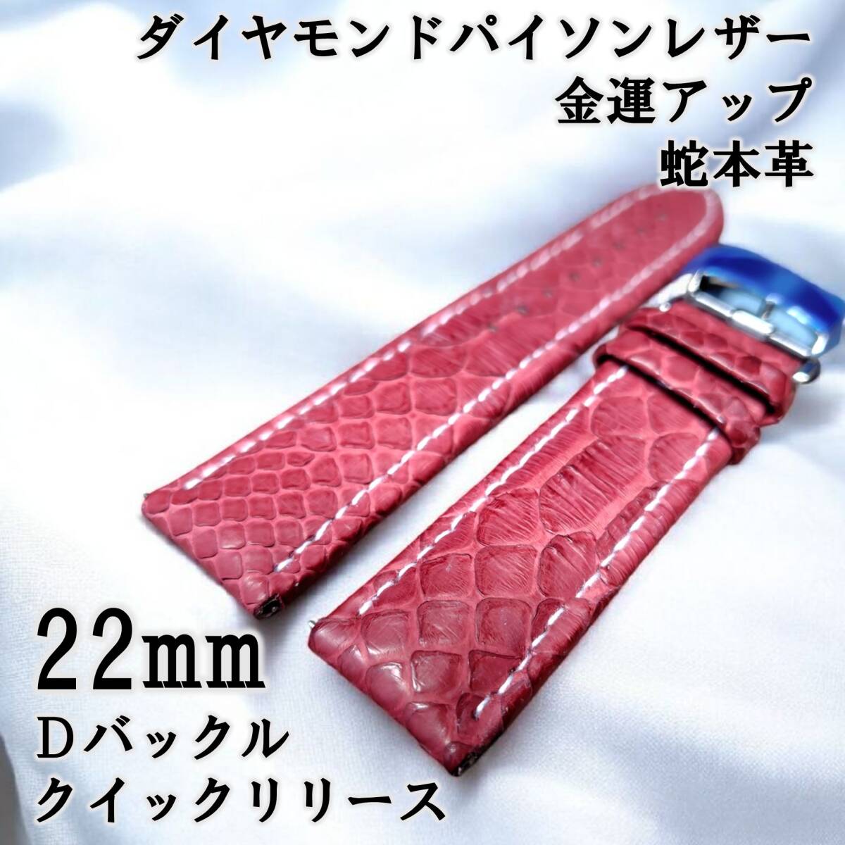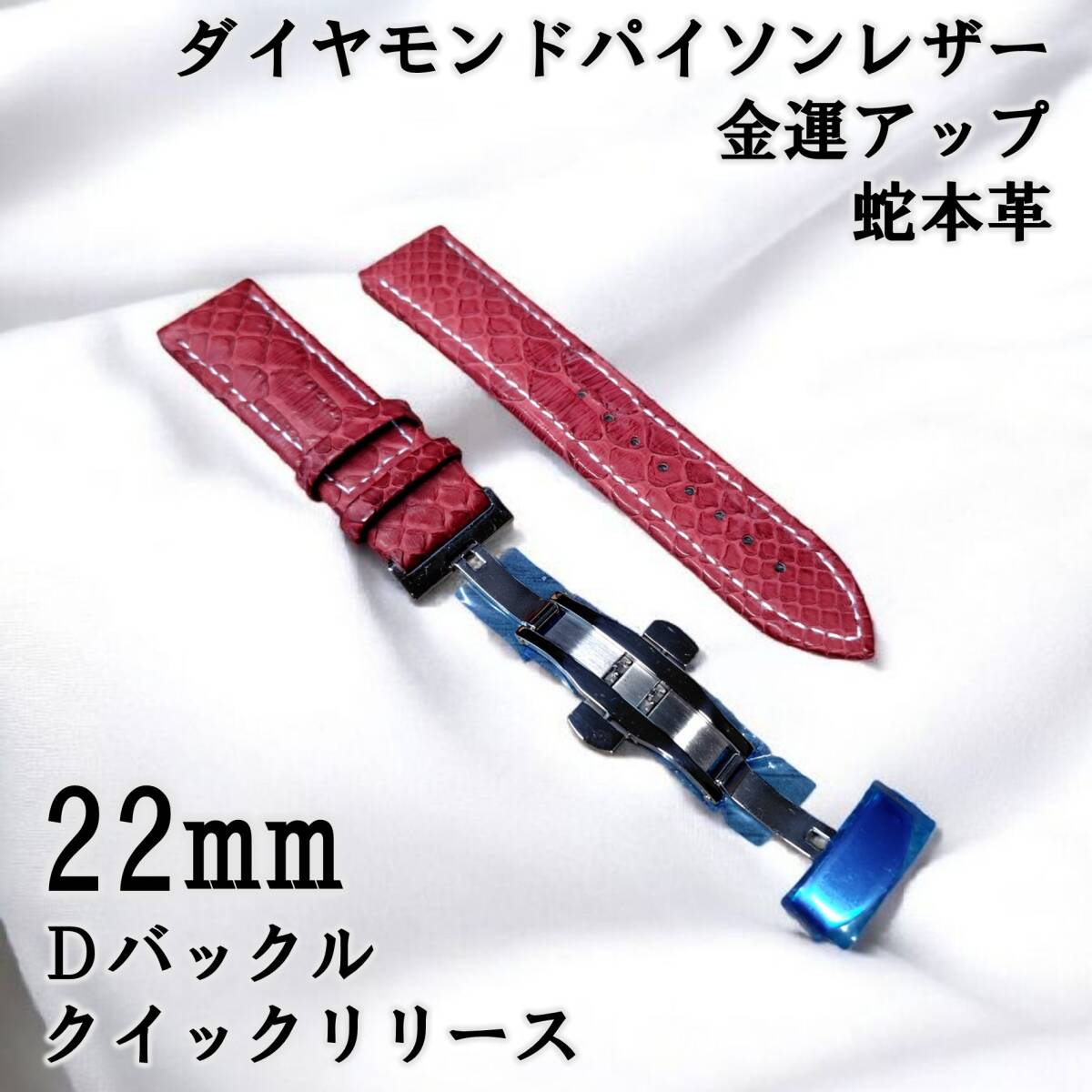 腕時計 ウォッチストラップ ベルト レザーベルト ダイヤモンドパイソンレザー バンド 本革 ラグ幅 22mm ヘビ革 蛇革 パイソンレザー 金運UP