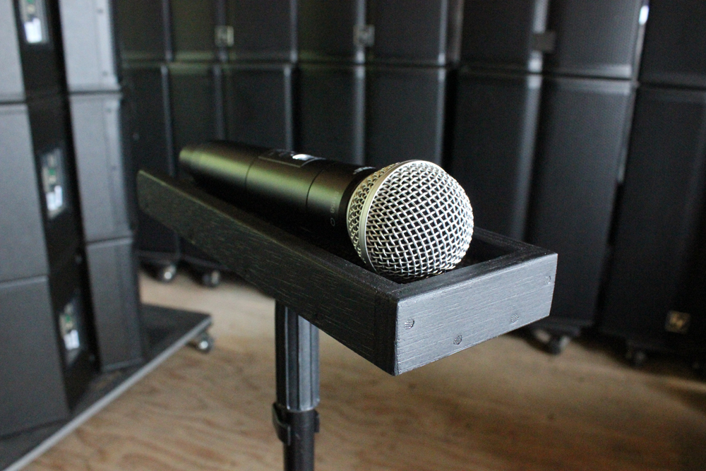 スタンドマウントして舞台上で・また演台又は机に置きマイクを載せたり、薄型で現場で好評だったので たくさん作製しました!