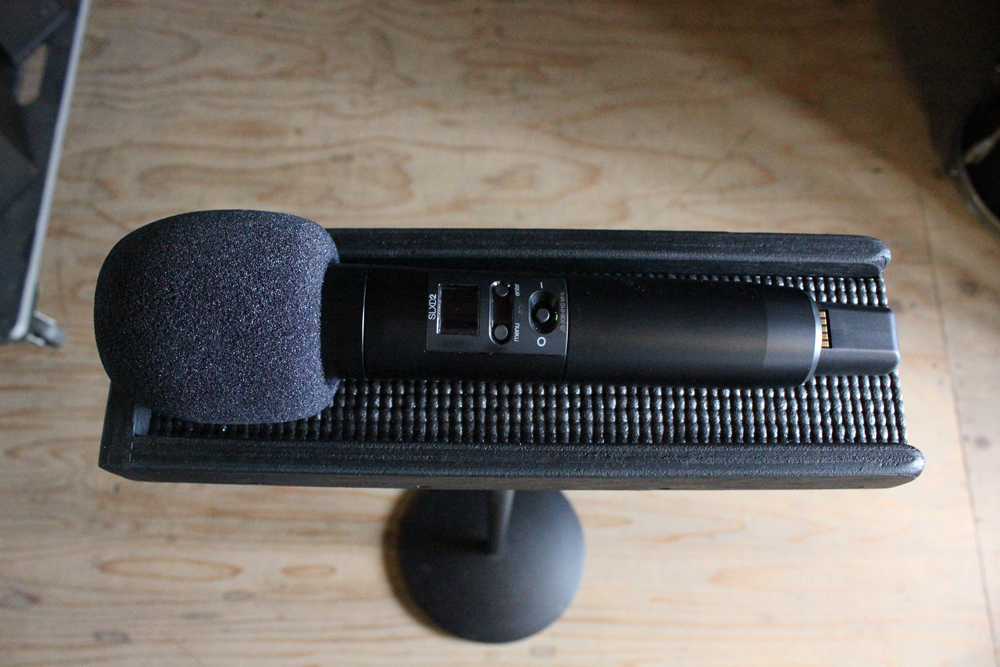 軽量ですのでマイクスタンドにマウントした時の重心が下がり安定感を増します。