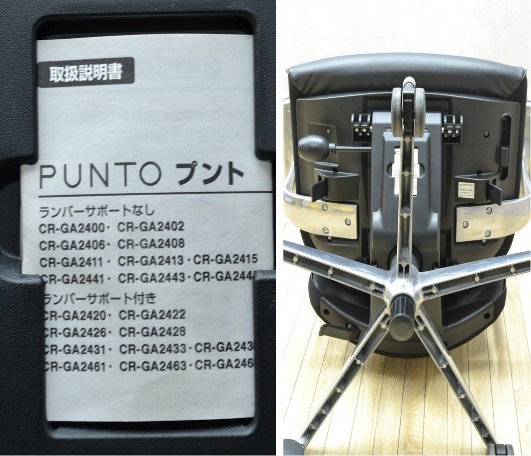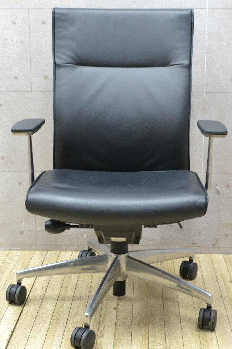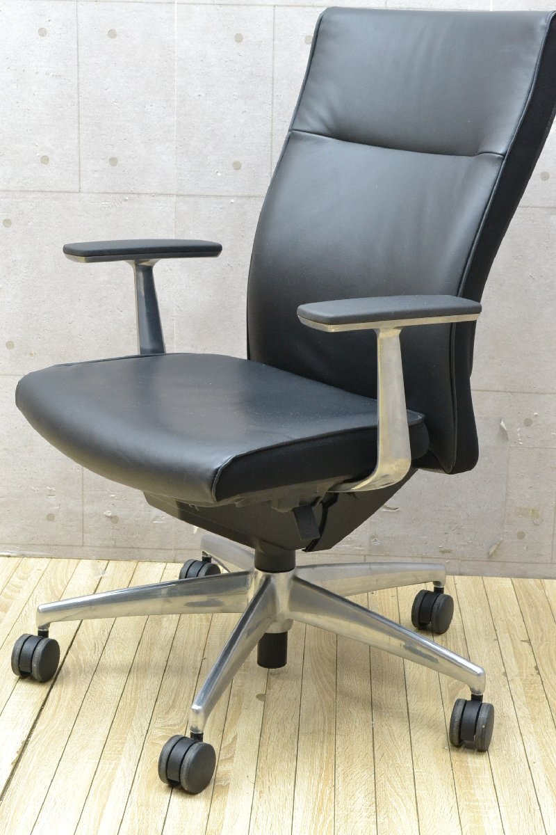 C2774■KOKUYO コクヨ■PUNTO プント■オフィスチェア■ハイバック 革張り■昇降 リクライニング■OAチェア■アルミ肘■キャスター