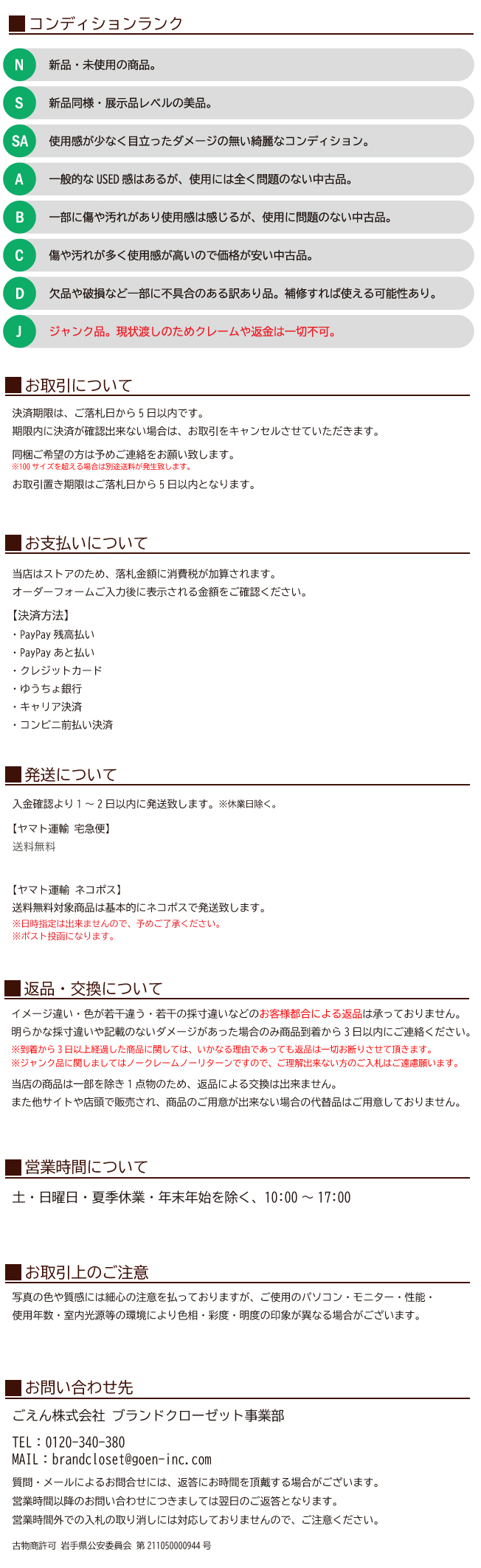 Ⅲ.一旦成功中标,您必须全额支付该拍品(成交价+消费税+银行转账费+日本邮费+代购费)。