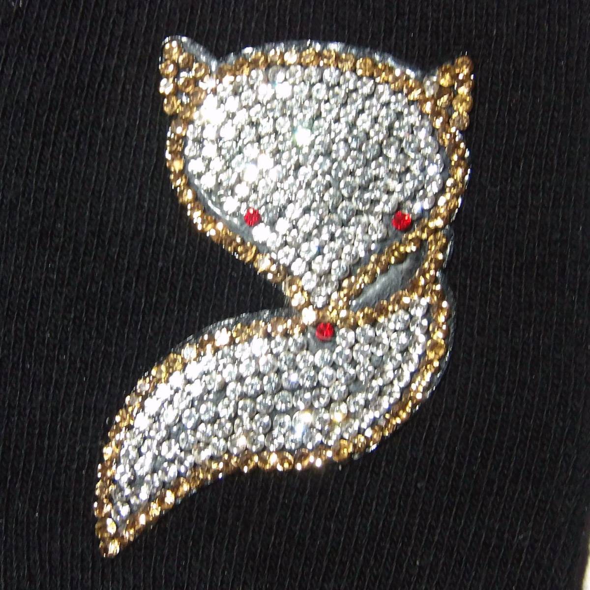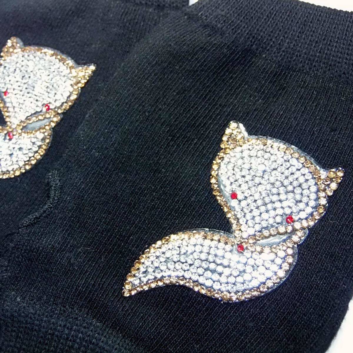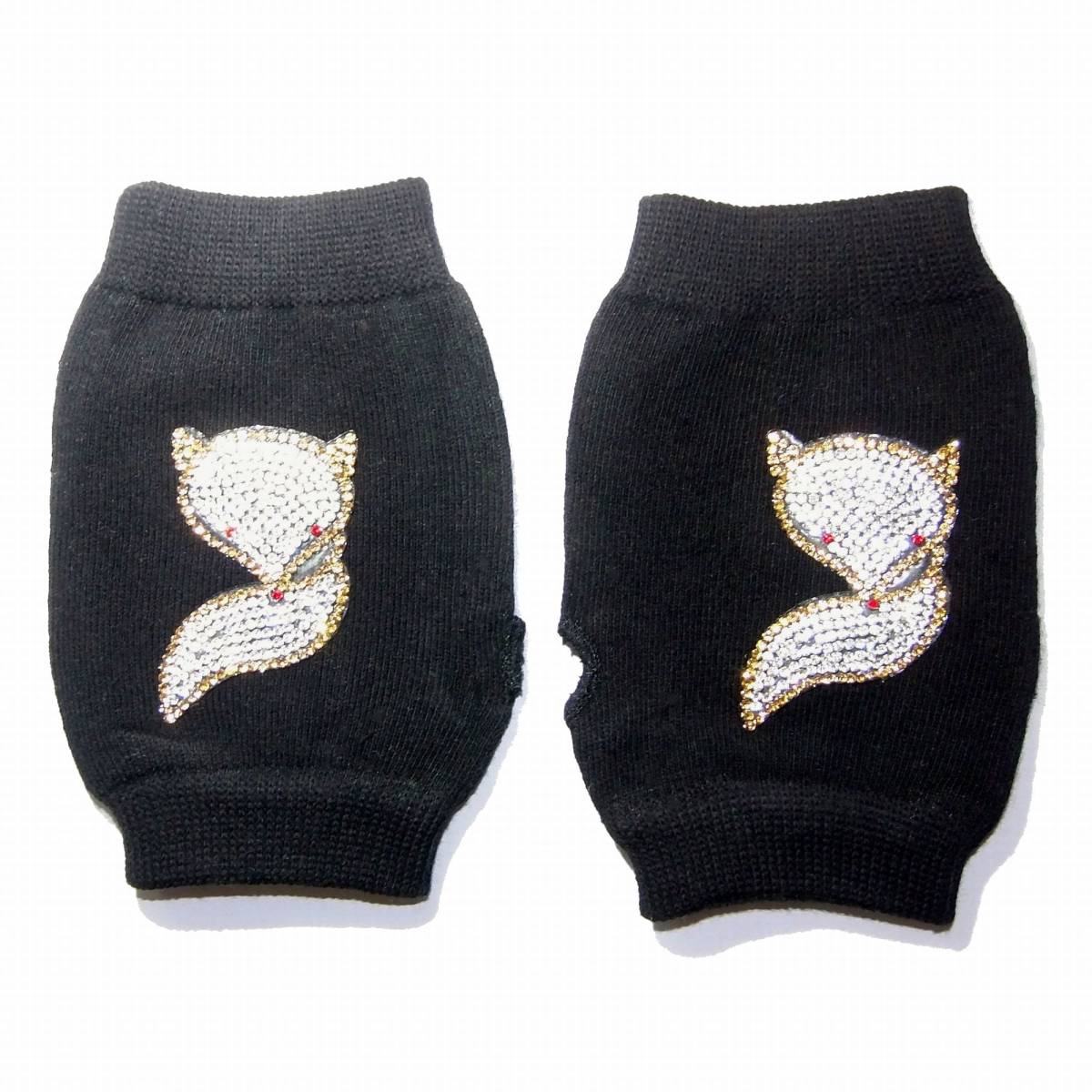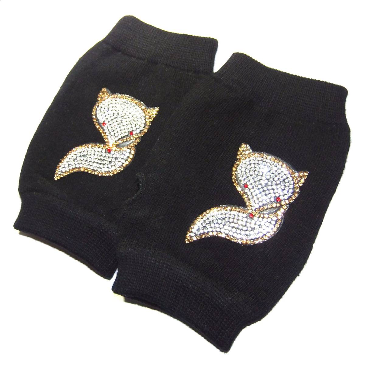 ラインストーン キツネ 狐 きつね ワッペン 指なし 手袋 ハンドウォーマー ハンドカバー アームカバー アームウォーマー