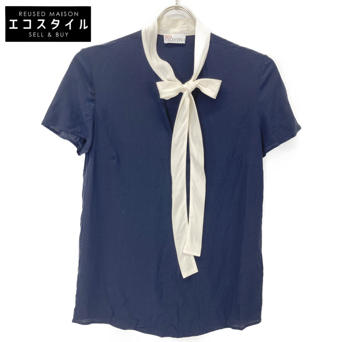 RED VALENTINO レッドヴァレンチノ SR3AAA802MJ ネイビー リボン ブラウス ネイビー 38 トップス シルク メンズ 中古