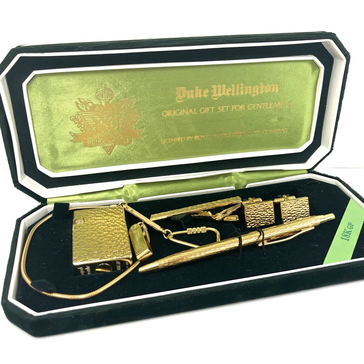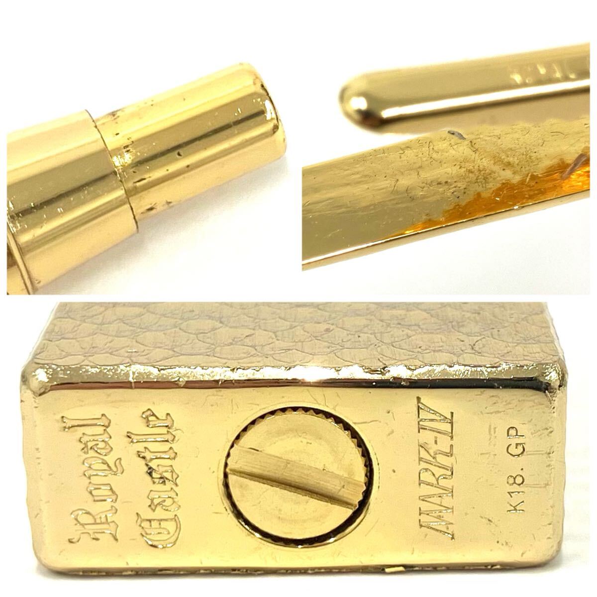 【A】ROYAL CASTLE ロイヤルキャッスル 18KGP メッキ ギフトセット ネクタイピン/カフス/ライター/ボールペン 中古/現状品【3323】