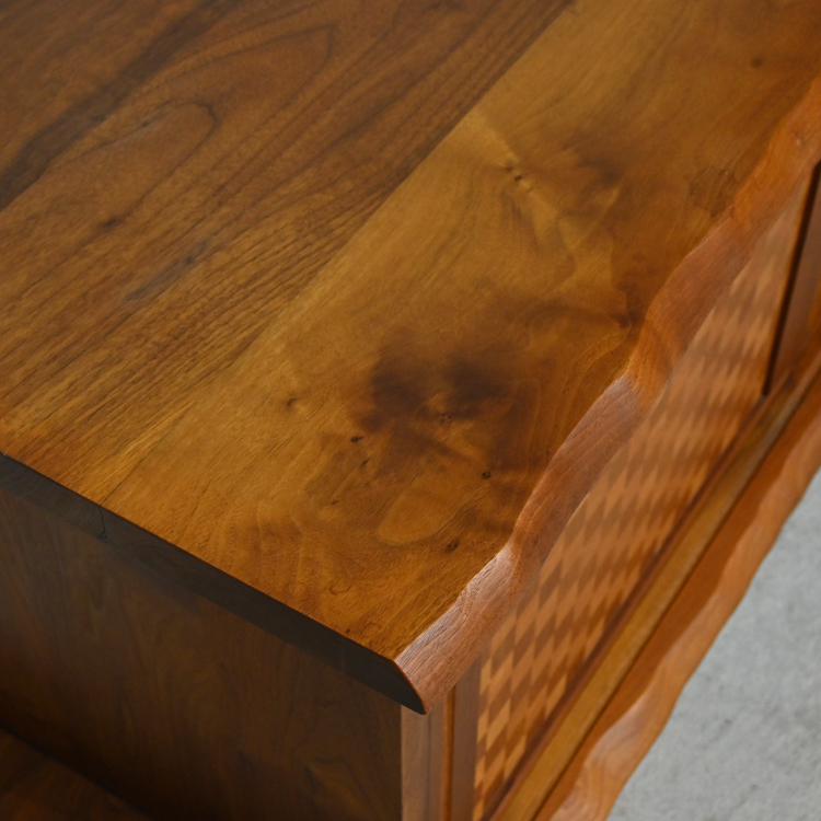 天板などの主要な部分にはウォールナット無垢材が使用されており、天板の手前側は耳付きとなっています。