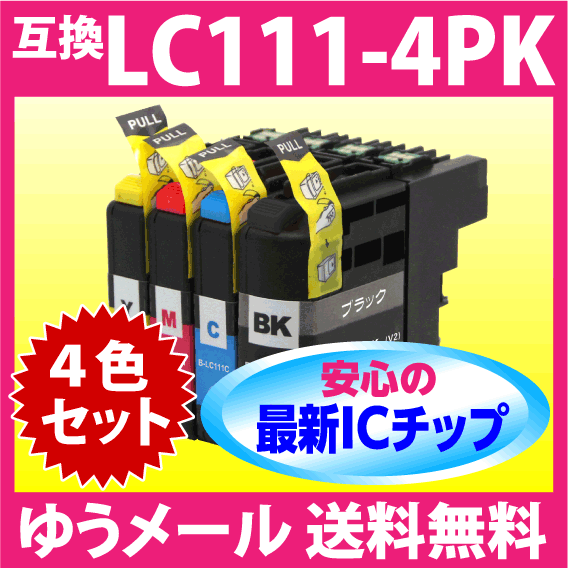 ブラザー brother 互換インク LC111-4PK 染料インク 内訳:LC111BK ブラック/ LC111C シアン / LC111M マゼンタ / LC111Y イエロー