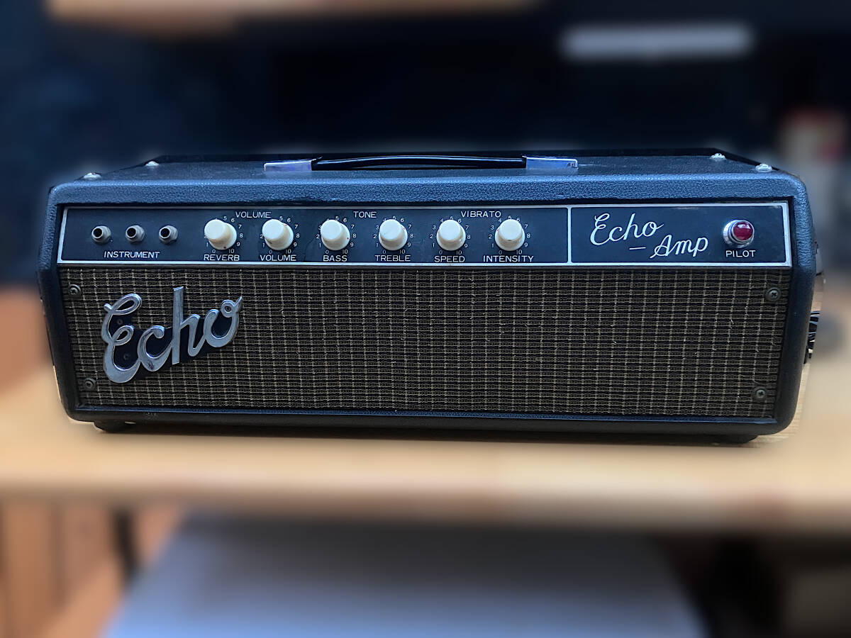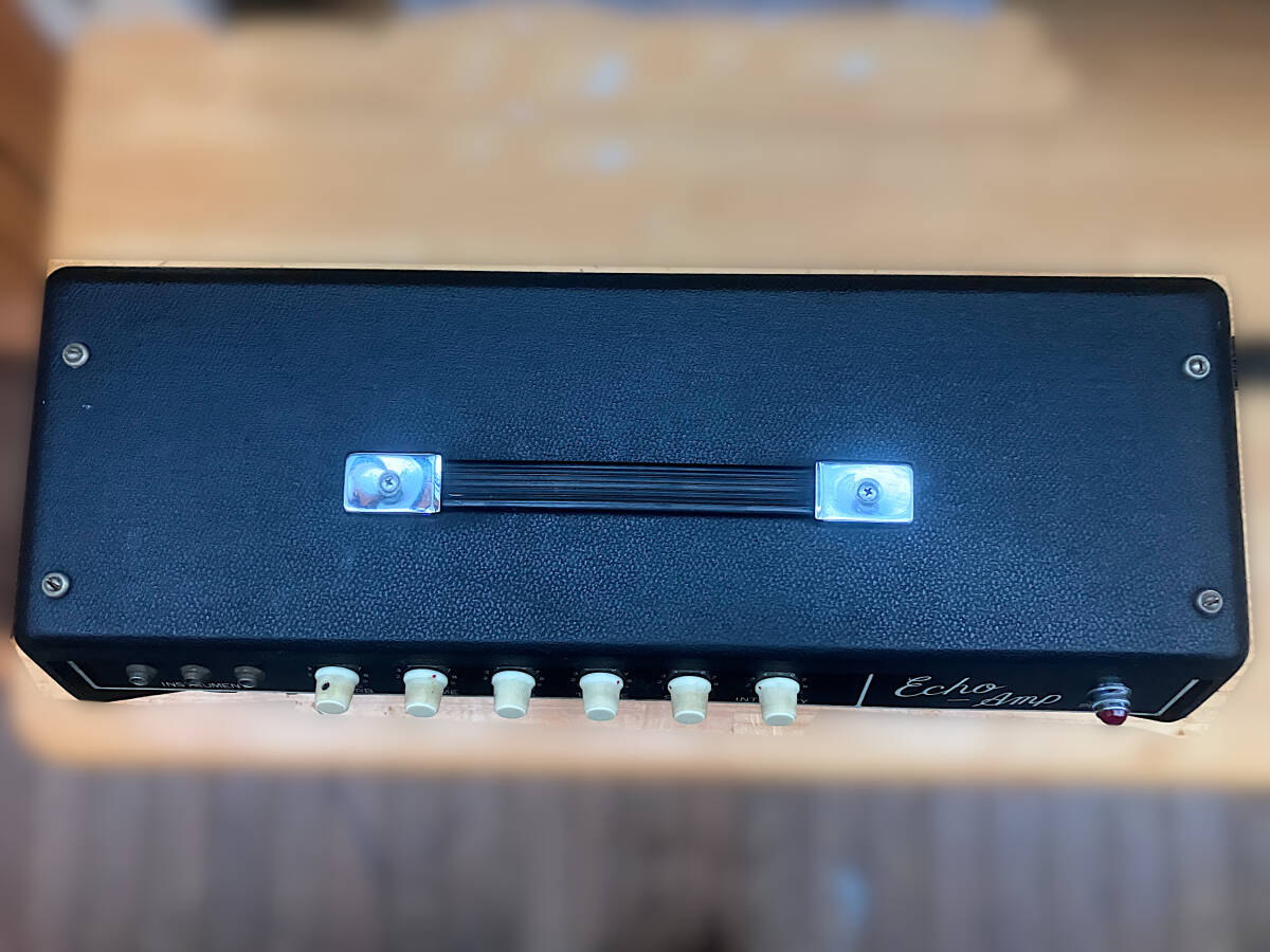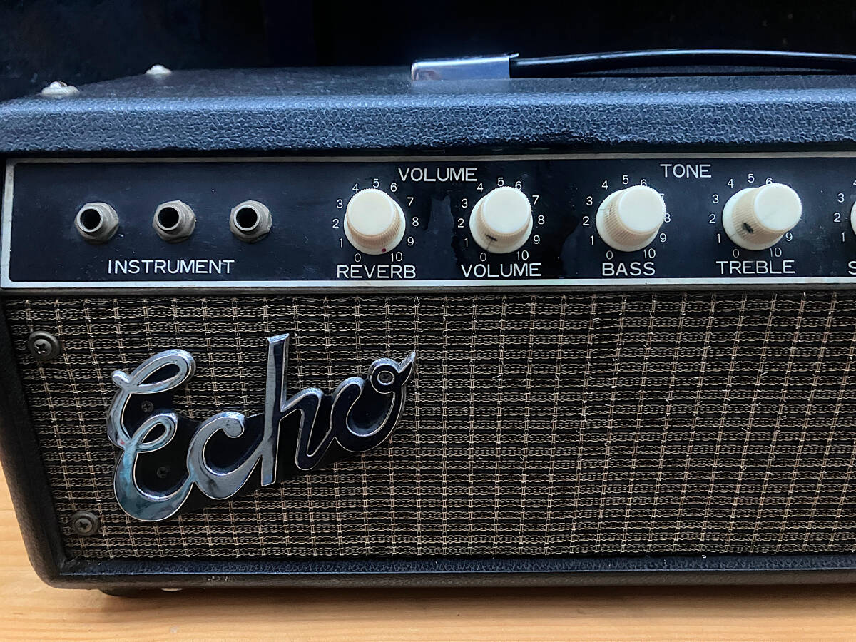 これは1960年代後半のビンテージ・エコー(後にエルクとなった)オールチューブアンプです。写真からもわかるように、古いコンデンサーは全てマロリー150コンデンサーに交換済みです。新しいカップリングコンデンサー、フィルターコンデンサー、バイパスコンデンサーが搭載されています。そのためアンプのサウンドは力強く、低音量ではクリーンで、音量を上げると滑らかに歪み始めます。トレモロ機能は全く動作しません。リバーブタンクを叩くと音がしますが、出力信号にはリバーブが反映されません。このため、本アンプはジャンク品として販売されます。
