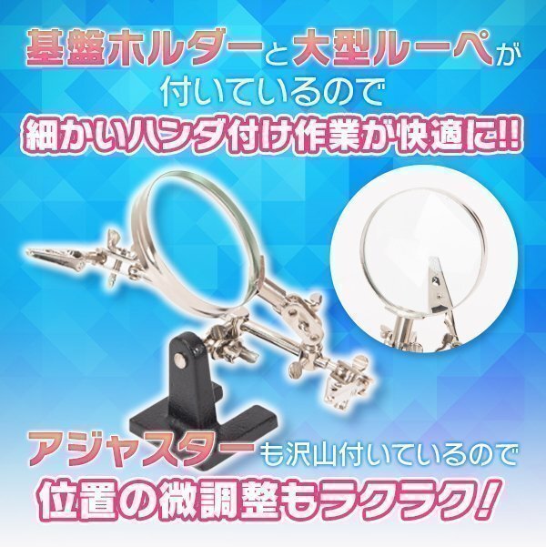 基盤ホルダーと大型ルーペが付いているので細かいハンダ付け作業が快適に!
