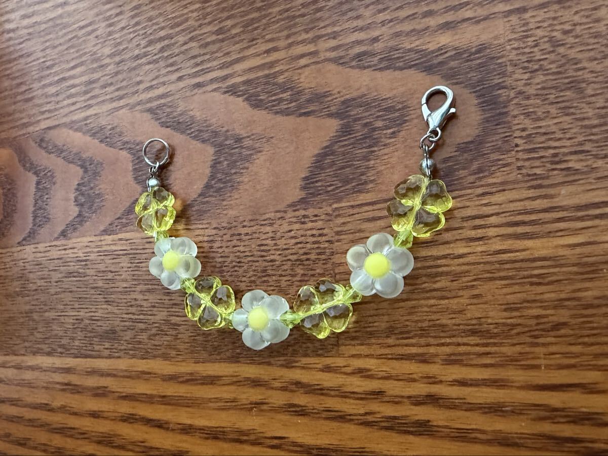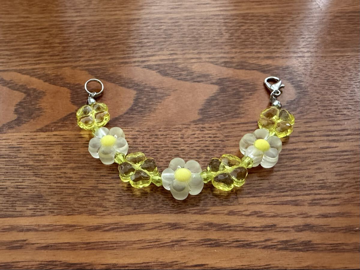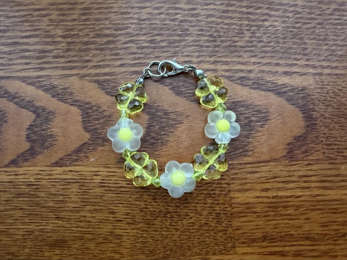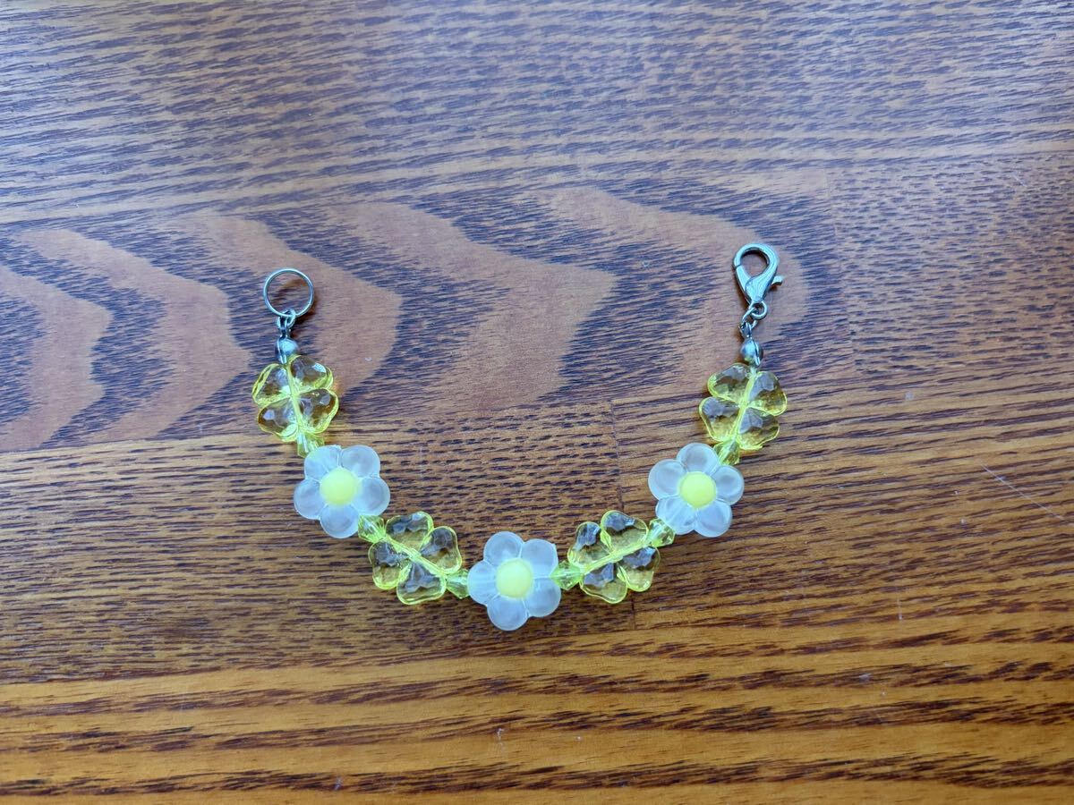 黄色い花、四葉ビーズ