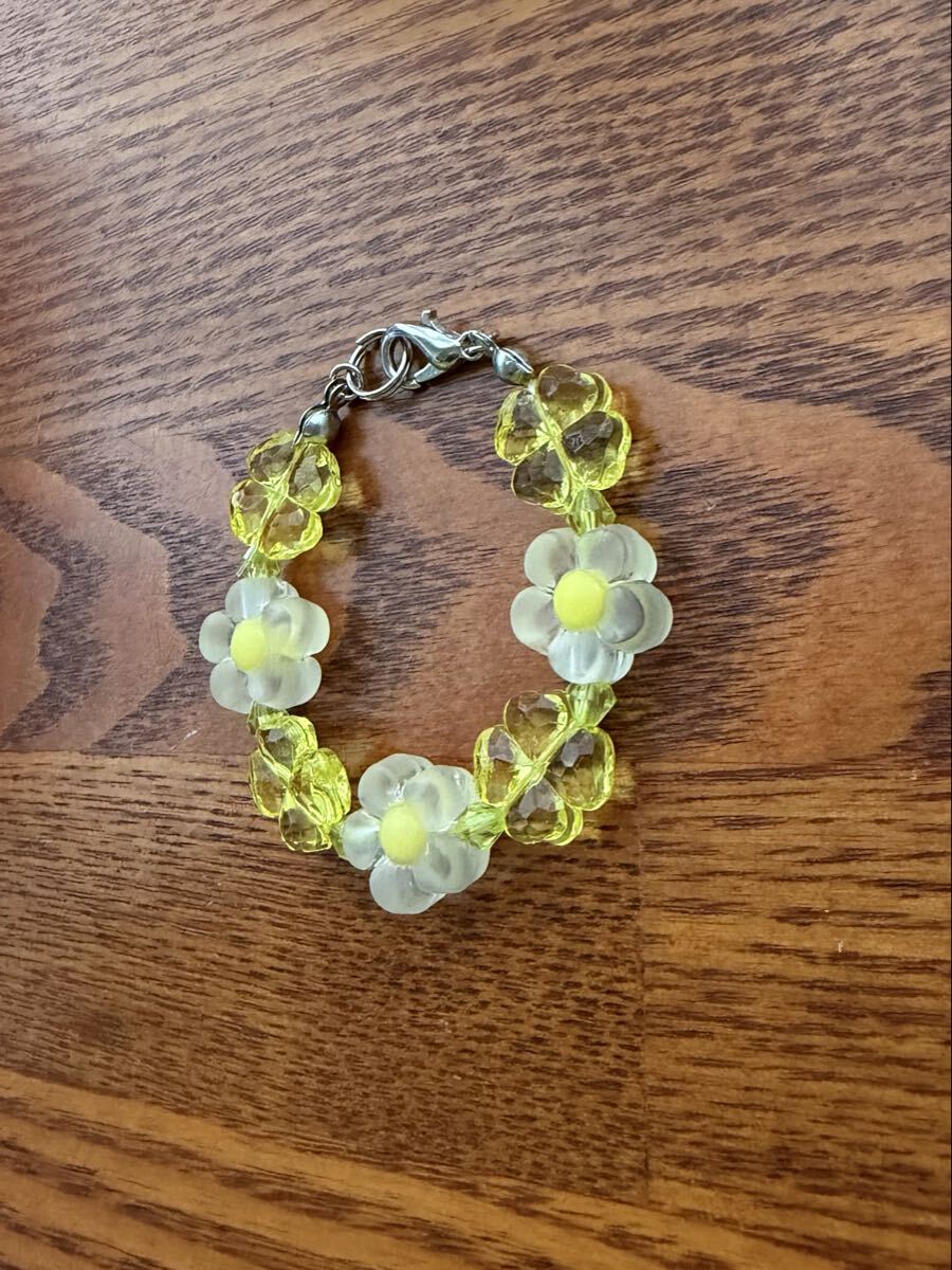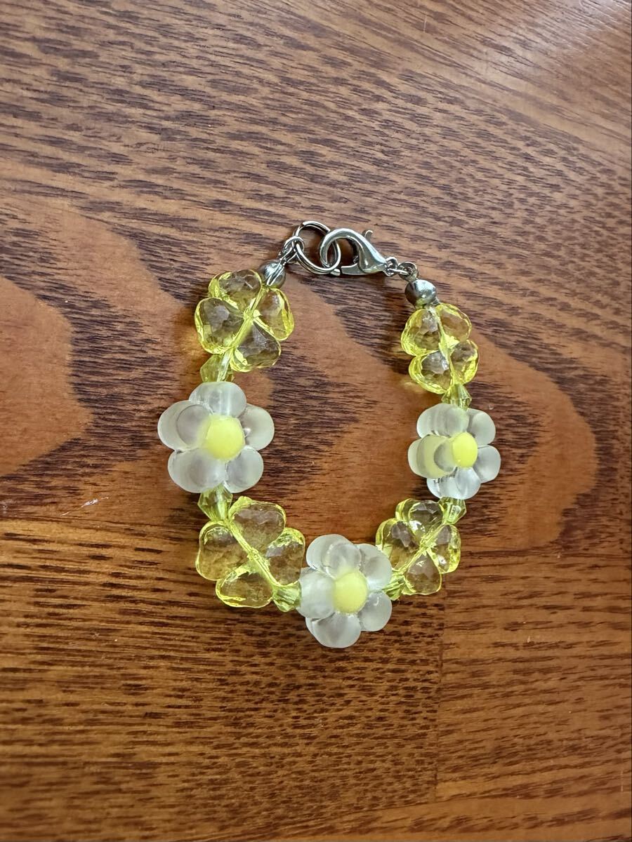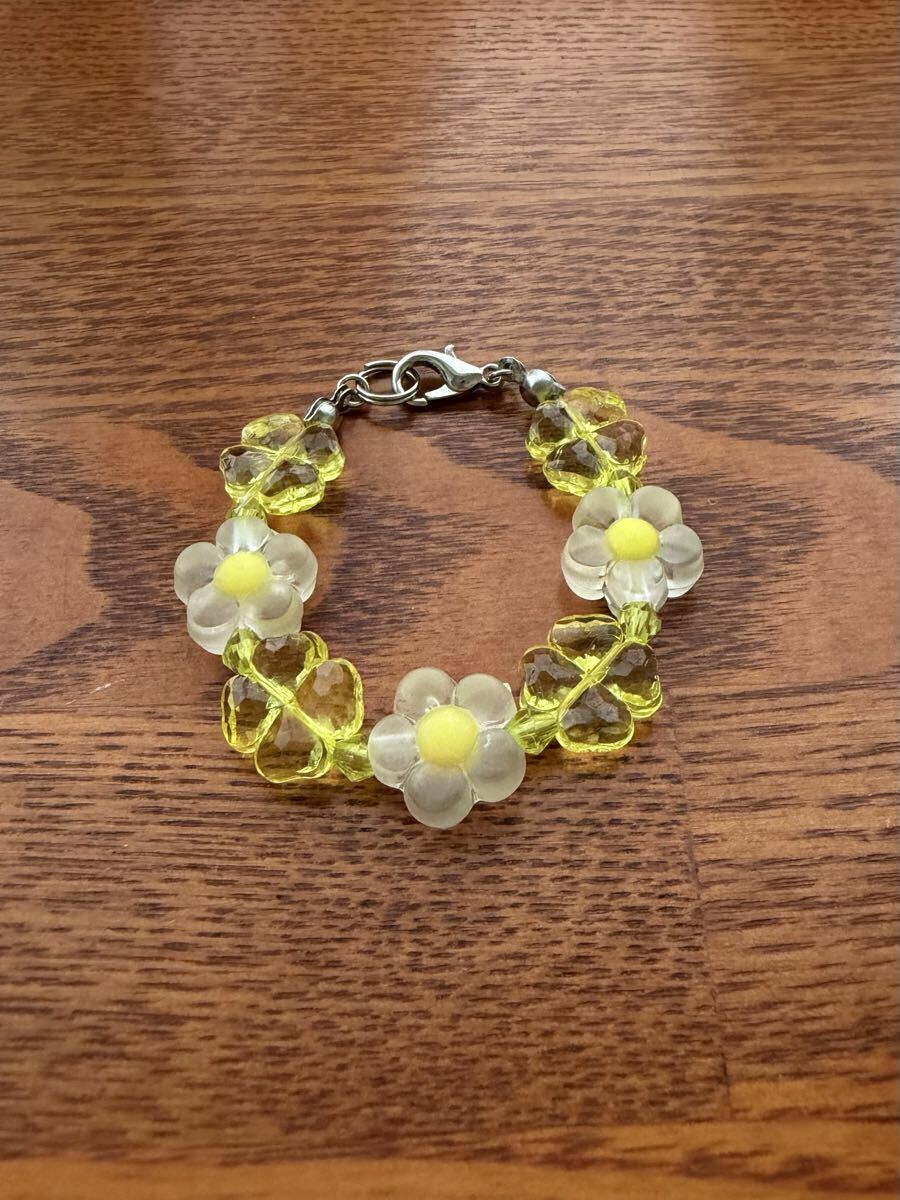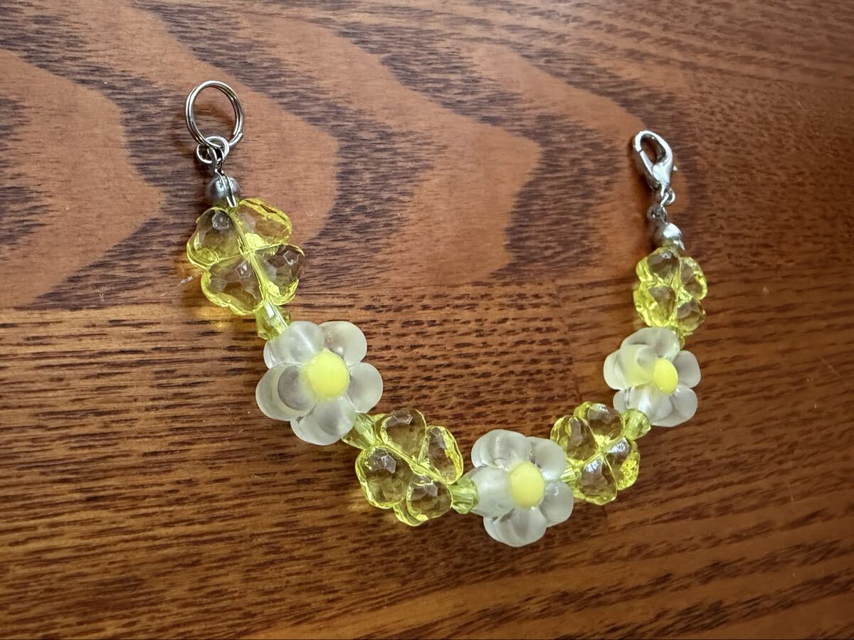 黄色い花、四葉ビーズ
