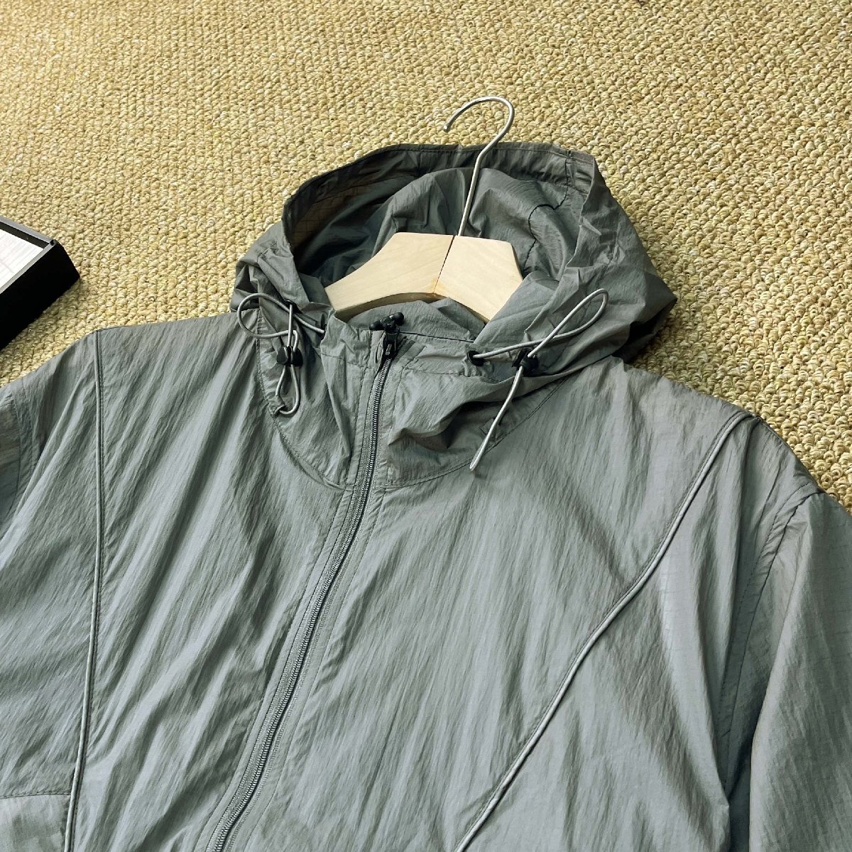 フロントジッパーで着脱も簡単です。トップスのフードと裾にはドローストリングが付いており、必要に応じて調節できます。ウエストにゴムと調整紐が付いているので、自分の好みに合わせて調節でき、快適なフィット感を提供します。太ももとジャケットのサイドにもポケット付き、ちょっとした外出には便利です。
