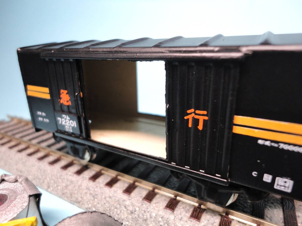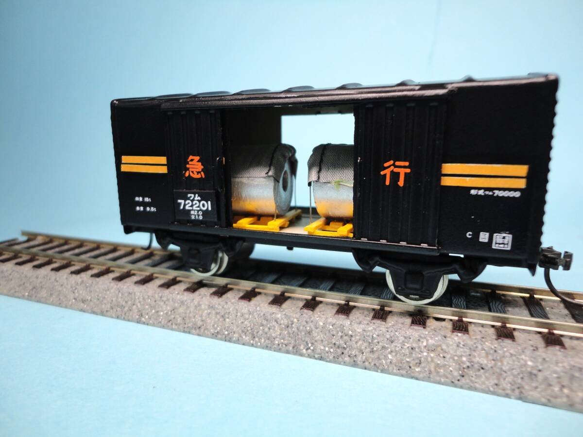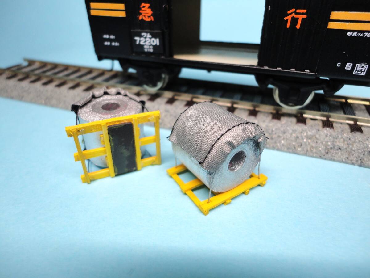 荷室にシートをかぶったロール材の貨物を搭載しました。