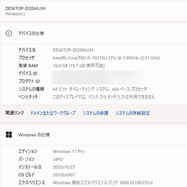 2024年11月リリースのバージョン24H2にアップデート済みなのですぐにお使いいただけます。