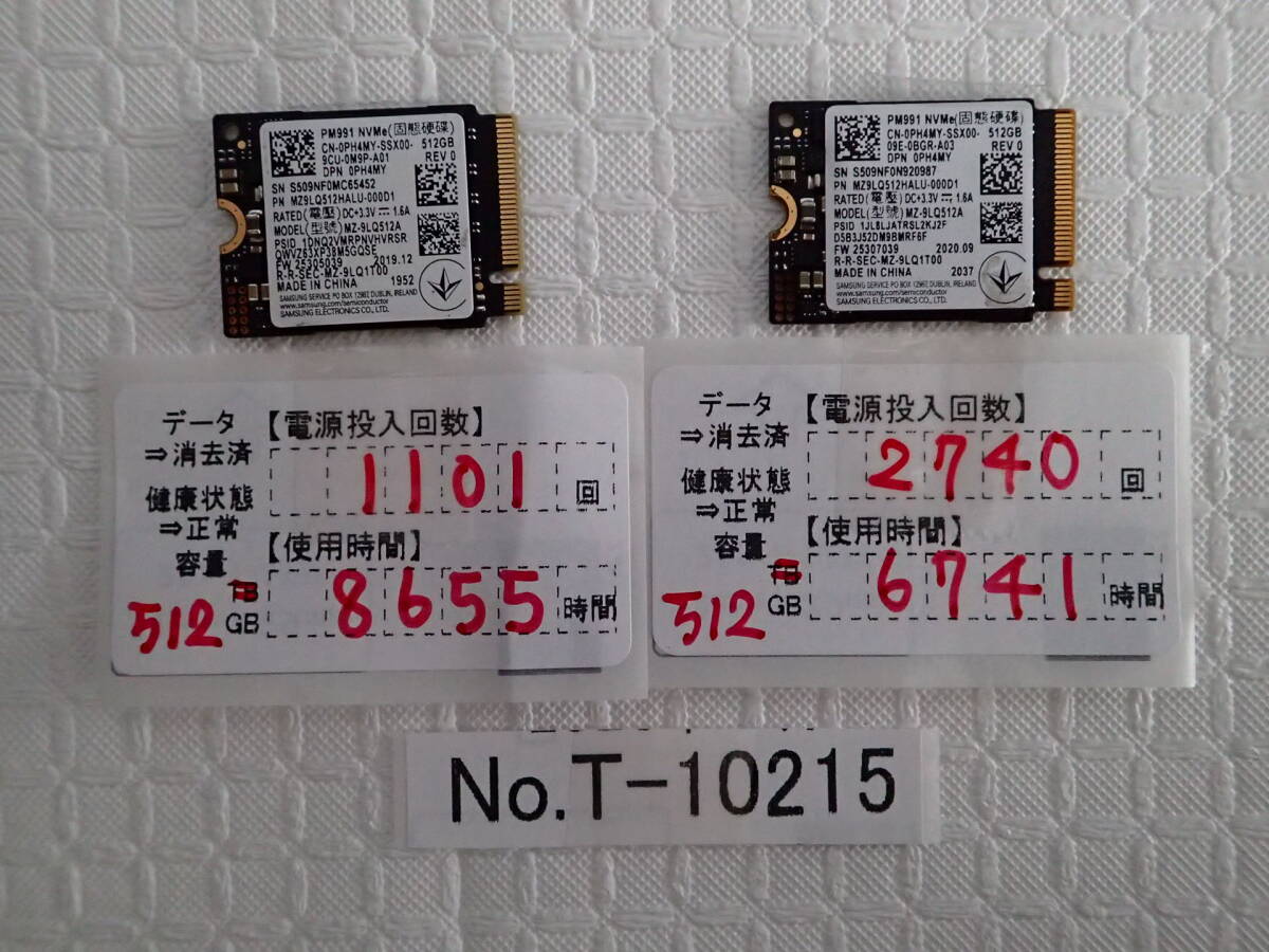 T-10215 / SSD / SAMSUNG / M.2 2230 / NVMe / 512GB / 2個セット / ゆうパケット / 消去済み / ジャンク扱い | |||