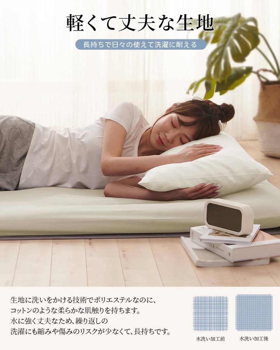 • 「ワンタッチシーツ」マットレスに付け外ししやすくて、全周フィットゴムを採用します。面倒な付け替えの手間も軽減できます。四隅がぴったりフィットして、しっかり固定されて、寝返りしてもズレにくくて、すっぽり被せるだけで着脱単です!ズレ防止ゴム付きなので、 折りたたみマットレス用、 敷き布団に適用して、いろいろのところに使えます。