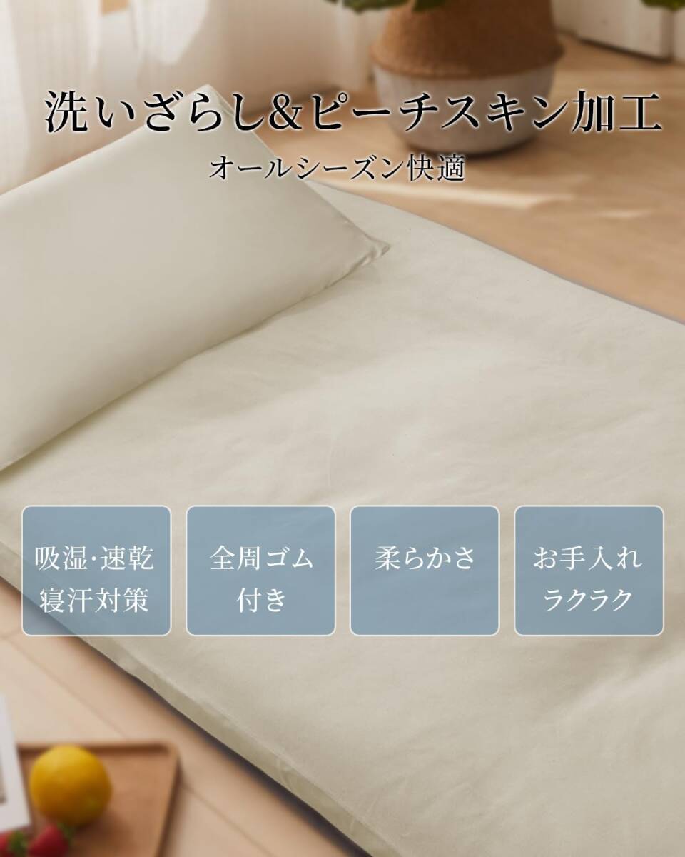 敷き布団カバー シングル 洗いざらし ワンタッチシーツ ピーチスキン加工 ベージュ