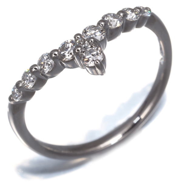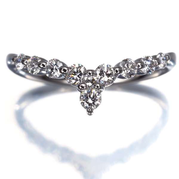 緩やかなV字を描くリングへ上質ダイヤモンドを並べたヴァンドームのお品。お手元にエレガンスを与えてくれますよ。 |