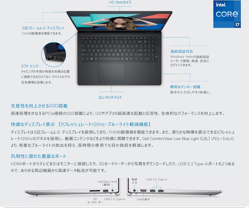 | ◆新品未開封 DELL 15.6型ノートNI385E-CNHBB(NI385-CNHBCB)[Inspiron 15 3520/Core i7-1255U/16GB/512GB/Xe/120Hz/Office 2021] 3年保証 | |