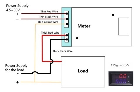 ●細い黄色の線は測定したいプラス(+)側及び負荷のプラス(+)側に接続してください。