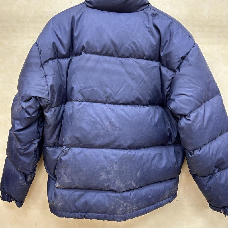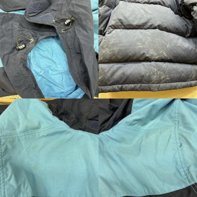 フード内部の劣化により粉がポロポロと表面に出てきます。両肩、背面に汚れ。裾回りに汚れ。中綿ライナー全体に汚れ多数あり。