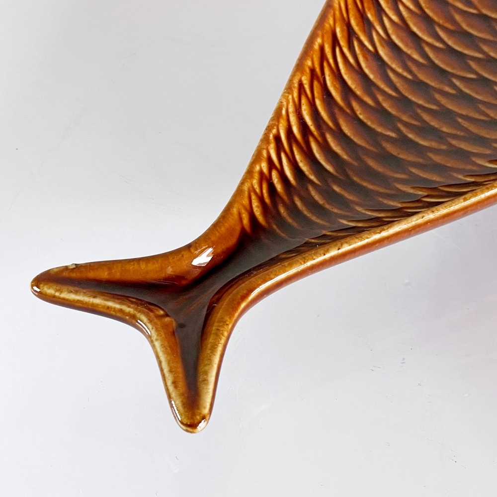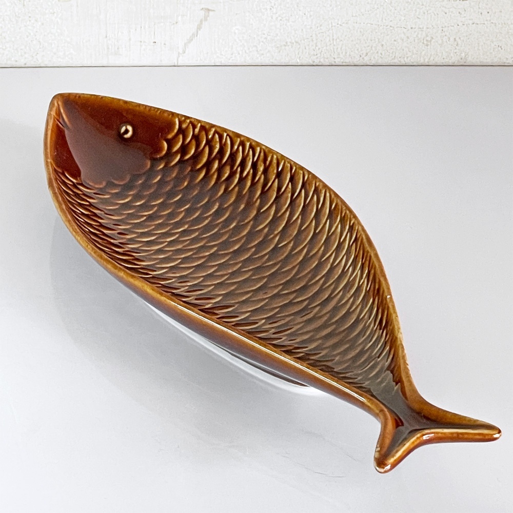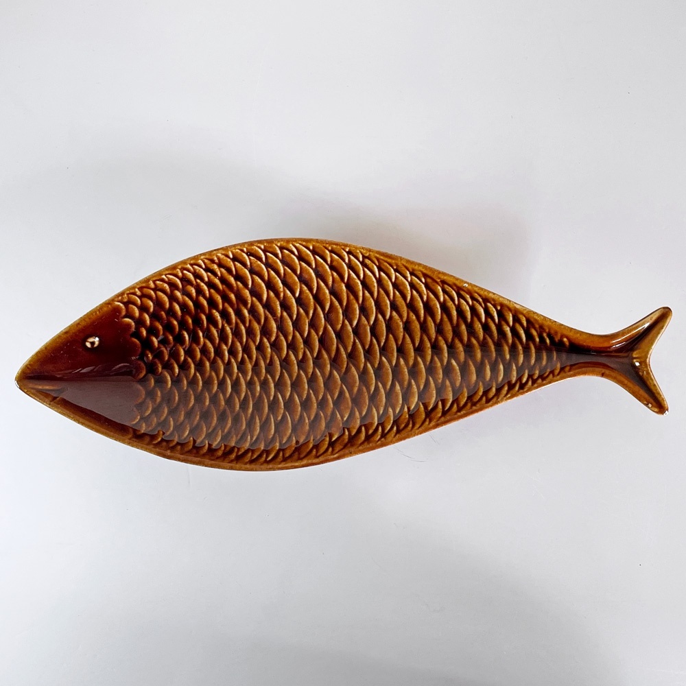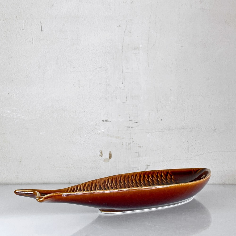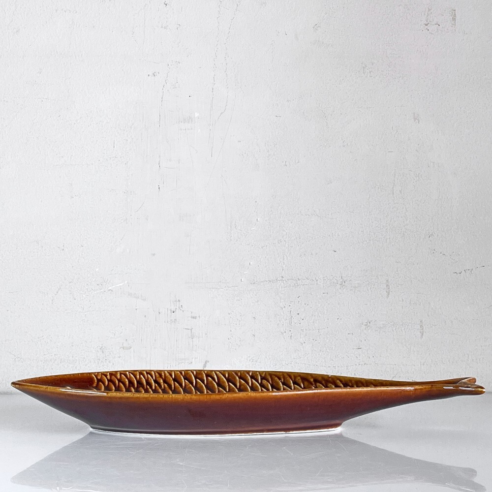 | コメント | 1825年、スウェーデンのストックホルムに設立されたGustavsberg(グスタフスベリ)。北欧を代表する陶磁器ブランドです。 こちらは、1958年より発売されていた「フラーデン Fladen」のフィッシュプレート。 デザインは、陶磁器からテキスタイルのデザインまで幅広く手掛けたStig Lindberg(スティグ・リンドベリ)によるもの。 魚(主にニシン)用のお皿としてそのまま魚をデザインしたこちらのプレート。つぶらな瞳と少しとぼけた表情が遊び心のある一枚です。 落ち着きのあるブラウンカラーは温かな雰囲気を演出。 釉薬の濃淡がウロコの装飾や美しいシェイプを惹き立てています。 食卓ではもちろん、小物をいれるトレーとしても素敵な一枚。 昔ならではの製法で作られた素朴な味わいや温かさをぜひ実用にてご堪能下さいませ。 ※当ショップは、主にリサイクル品を取り扱っております。基本的にUSED品である事をご理解頂き、ご入札をご検討下さいませ。 |