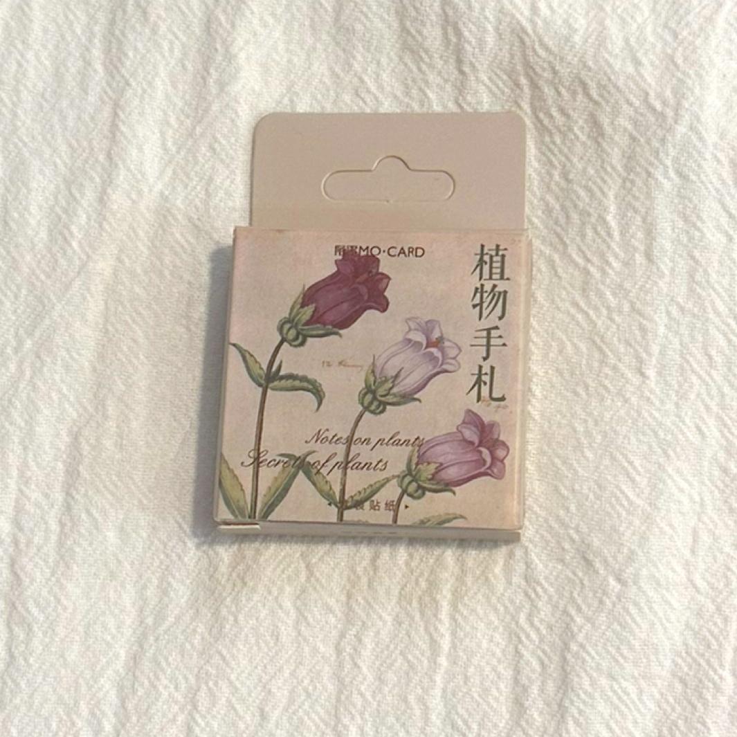 レトロなお花などの植物デザイン、スクエア型の箱入りフレークシール♪