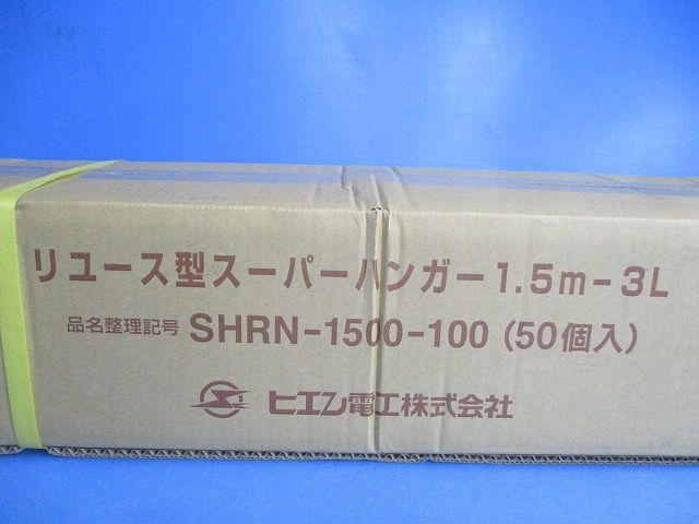 リユース型スーパーハンガー 1.5m-3L(50個入)(テープはがれ有) ヒエン電工 SHRN-1500-100