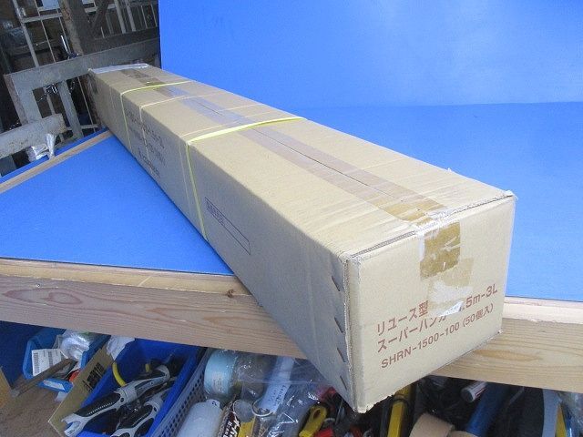 リユース型スーパーハンガー 1.5m-3L(50個入)(テープはがれ有) SHRN-1500-100