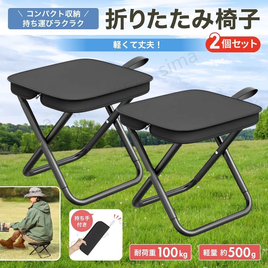 | 折りたたみ椅子 折りたたみチェア アウトドア チェア 2個セット コンパクト 小型 軽量 キャンプ 釣り 運動会 旅行 フェス 公園 携帯 黒 |