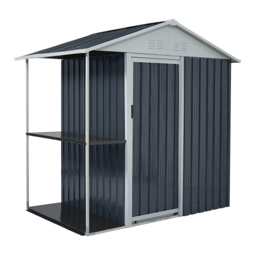 【収納ラック付き】物置 屋外 スチール 倉庫 戸外収納庫 W193*D130*H189cm 物置き おしゃれ 大型 収納庫 屋外物置 新作【ブルーグレー】