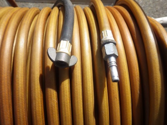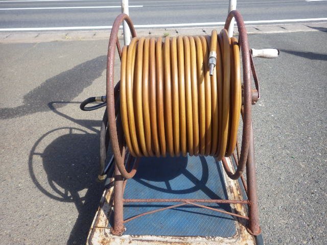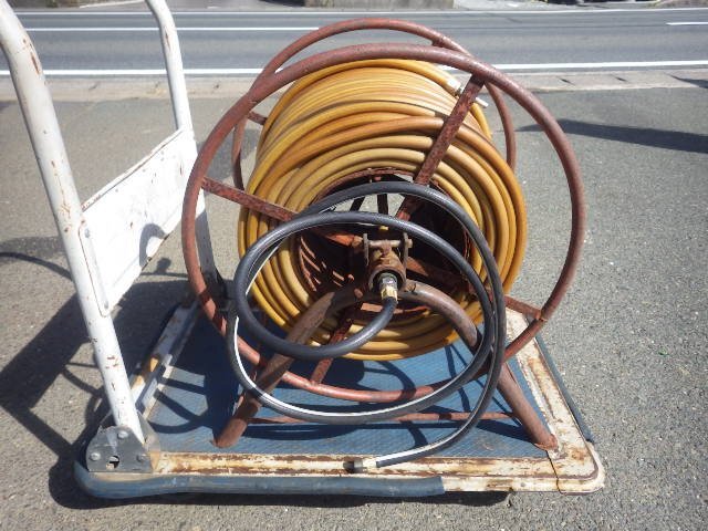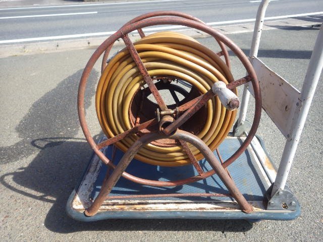 | スチール製巻取機 本体サイズ:高さ55cm 幅50cm 奥行45cm 総重量:約21kg (巻取部分):8,5φ 5Mpa 長さ:約106m (十川ゴム高圧スプレーホース) (リールから動墳まで):8,5φ 3,5Mpa 長さ:約2m (フンムキホース) 本体清掃済 用途:花木、園芸、水田、果樹への農薬散布用 ハウス内での防除作業・エアー及びウォーター用 農業散布として使用していた商品です ホースは耐久性のある日ノ出馬印の十川ホースです 吸排水の確認しましたが水漏れは見られませんでした 巻取機は外観にサビが見られますが使用には差支えありません ホースは変色・キズが見られますが弾力もあり使用には差支えありません 当ストアでは、農機具・建設機械・スクーター・電動工具・電化製品・厨房機器等の販売・買取を随時行っております お持ち頂ければ無料にて見積り・買取・下取りをさせて頂きます 出張買取も応相談致します 無断で当商品をコピーして販売しているサイトがありますが当ストアはヤフー以外のサイトでの販売はしておりません!激安店・送料無料等となっている物は要注意です! | |