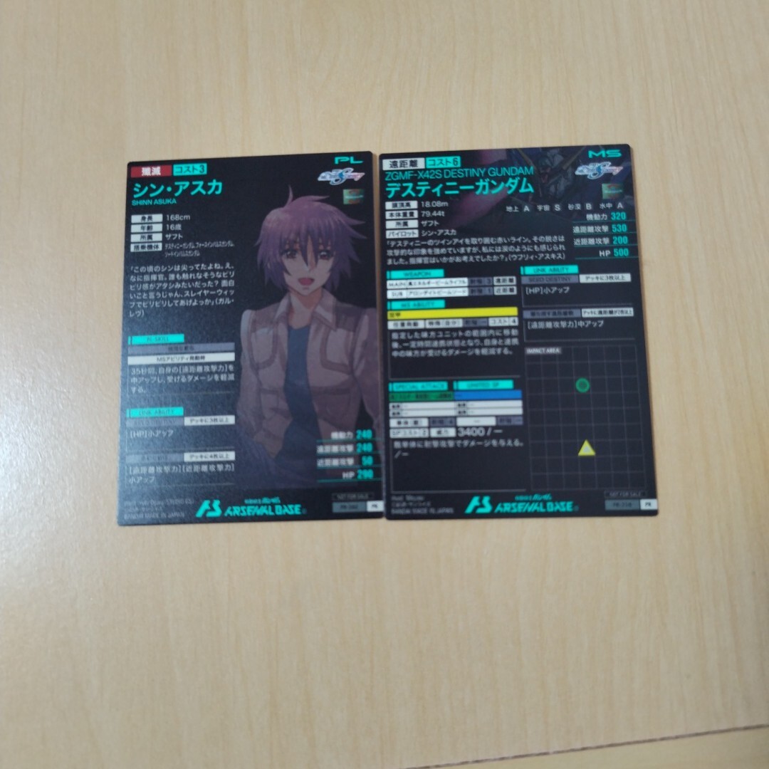 ガンダムアーセナルベース、プロモ、デスティニーガンダム&シン・アスカの出品となります。未使用品です。パック開封後、スリーブに入れて保管していますが初期キズなど気になさる方はご遠慮ください。配送料金は梱包代込みで全国一律、120円とさせていただきます。他の出品との同梱は対応いたします。ノークレム、ノーリターンにてお願いいたします。