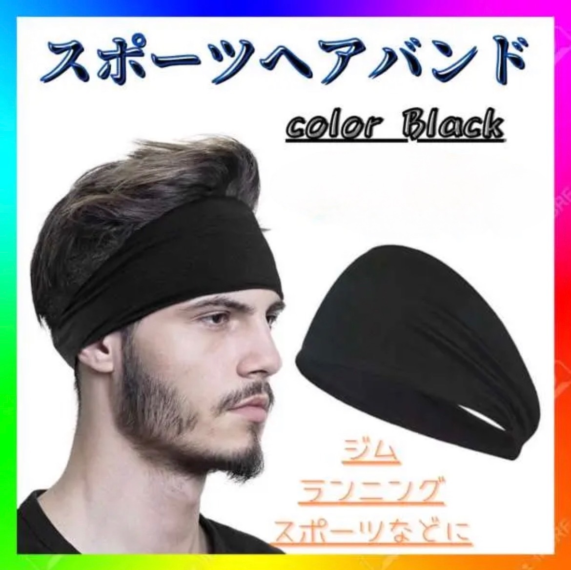 ヘアバンド スポーツ ジム 吸汗 速乾 バンダナ レディース メンズ 黒 ブラック ヘアー バンド トレーニング 運動 ランニング