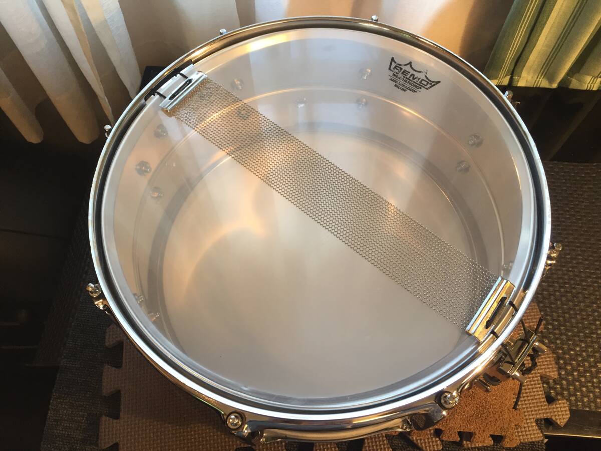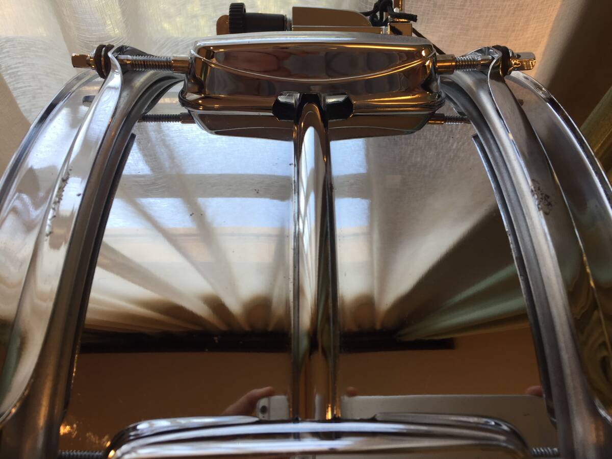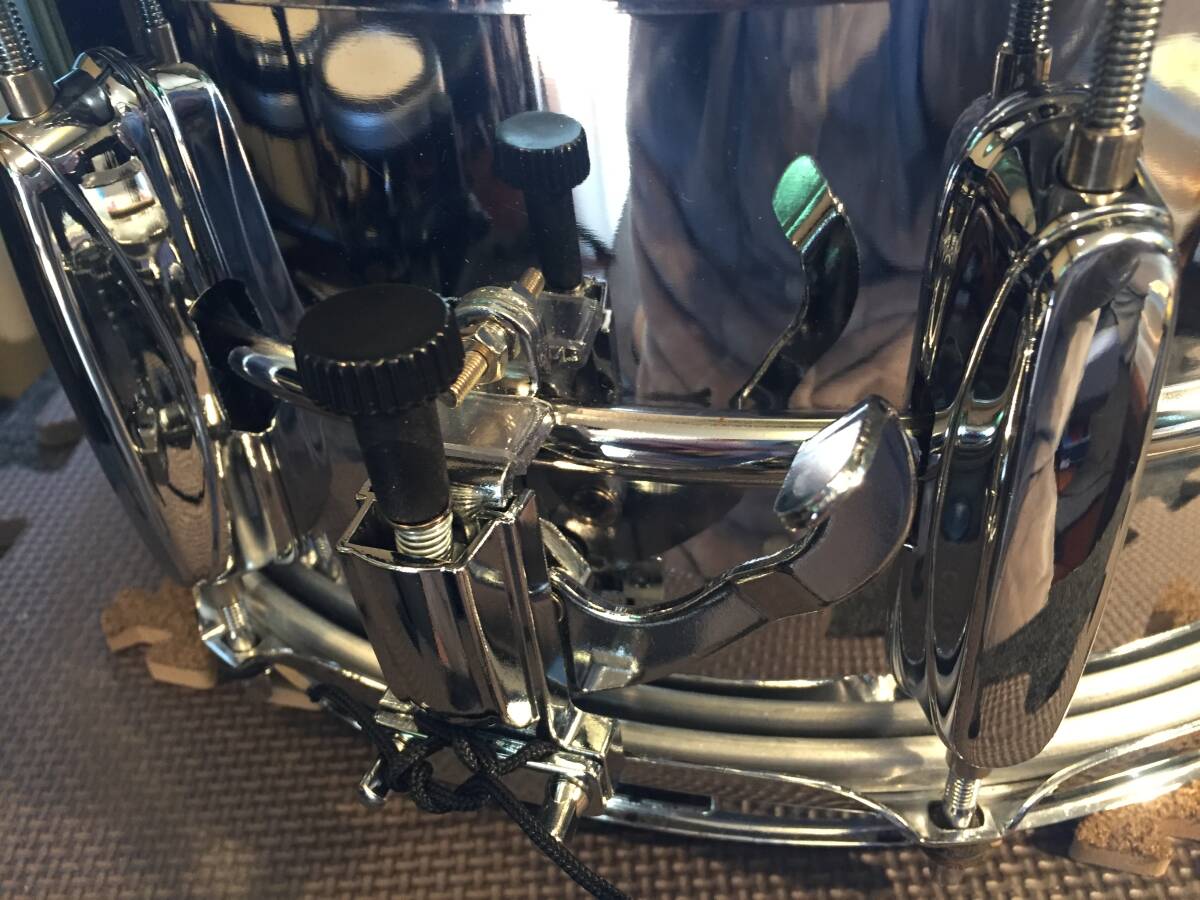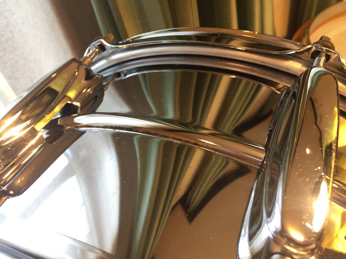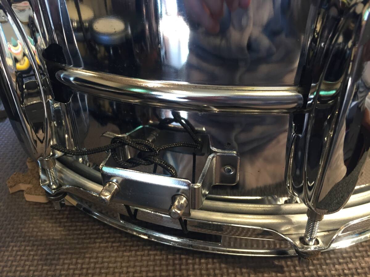 古い楽器のため、金属部にピッツやさびがあります。(画像9,10)スナッピーは傷みがありましたので交換しています。