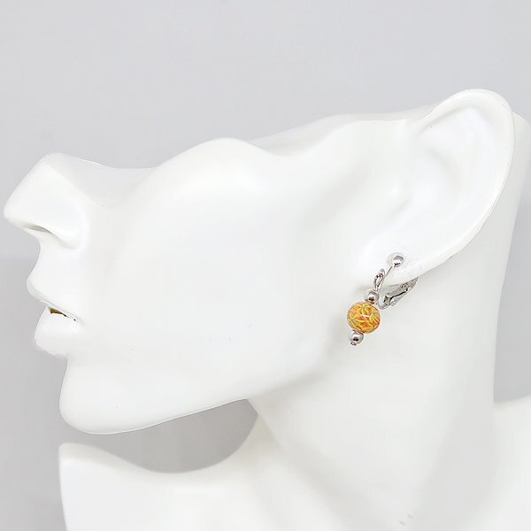 オレンジ ビーズ クリップ式 イヤリング