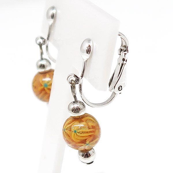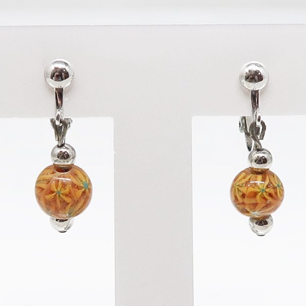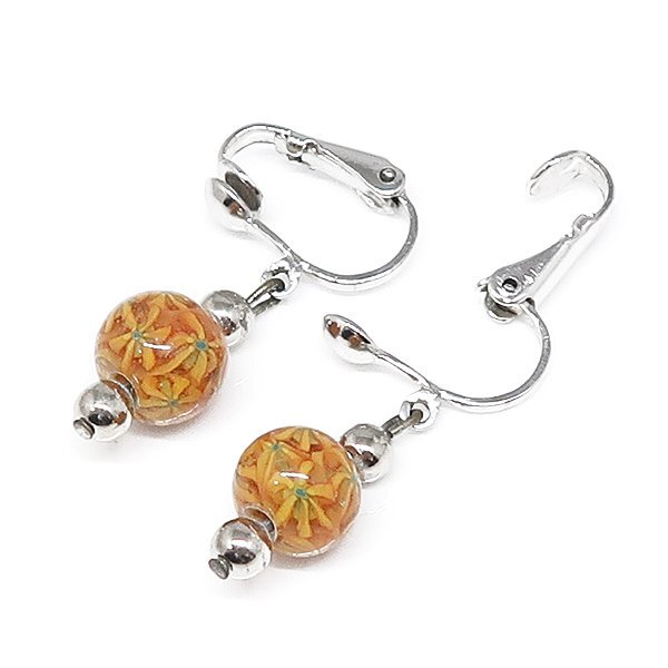 DKG★送料無料 BVA791★ オレンジ とんぼ玉 揺れる イヤリング クリップ式 揺れるイヤリング とんぼ玉イヤリング