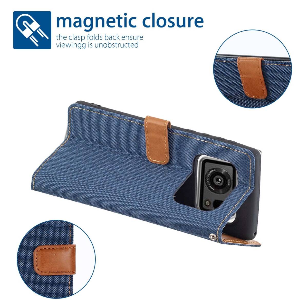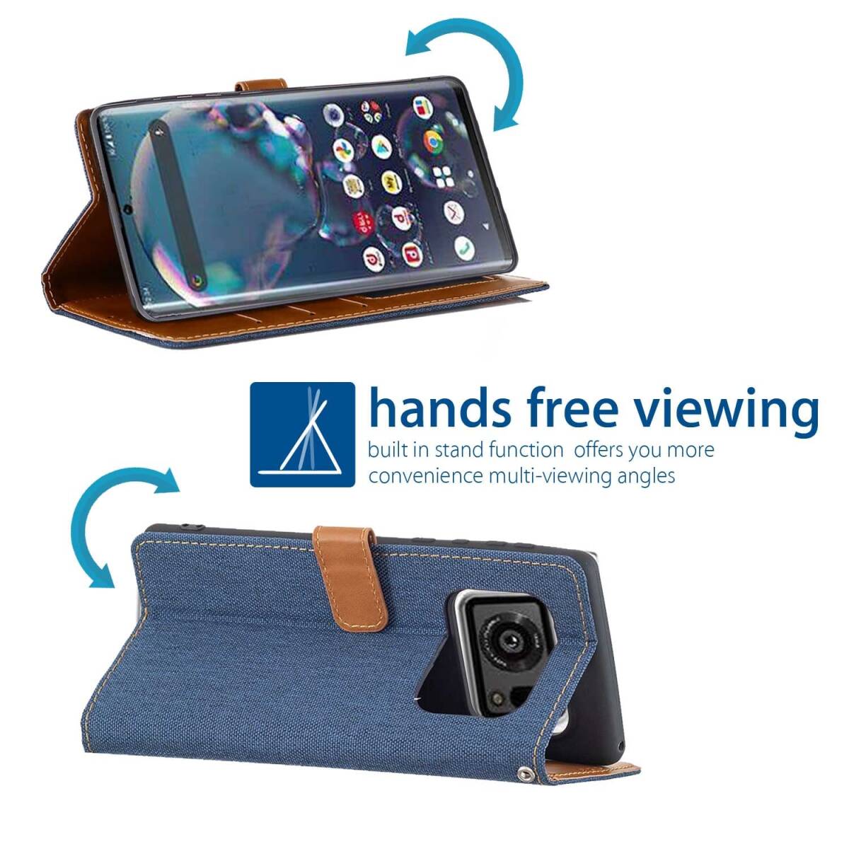 【 Viesa 】新型モデル デニム デザイン ケース 手帳型 AQUOS R6 / docomo SH-51B softbank 対応 SHARP 手帳ケース(ダークブルー) 全面保護 ベストデニム材料 カード収納ポケット 横置きスタンド機能 スマホケース シャープR6 ドコモsh51b ソフトバンク アクオスr6 BLUE