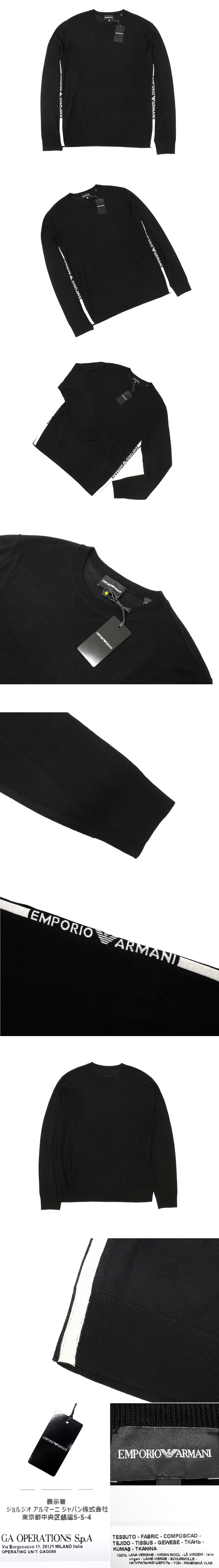 7万新品◆L◆EMPORIO ARMANI アルマーニ◆ヴァージンウール100% 薄手クルーネックニットセーター 黒ブラック