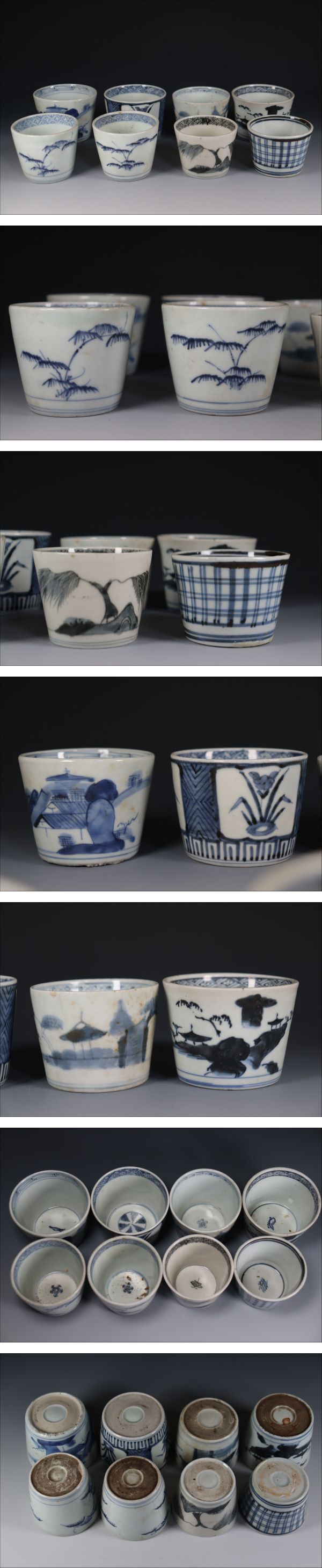 | 商品説明 | 商品名:蔵出し品 古伊万里 時代 染付 蕎麦猪口 8客 ⑮ 付属品:なし。 サイズ:画像参照になります。 状態:キズがああるものもございます。 |