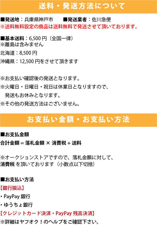 Ⅲ.一旦成功中标,您必须全额支付该拍品(成交价+消费税+银行转账费+日本邮费+代购费)。