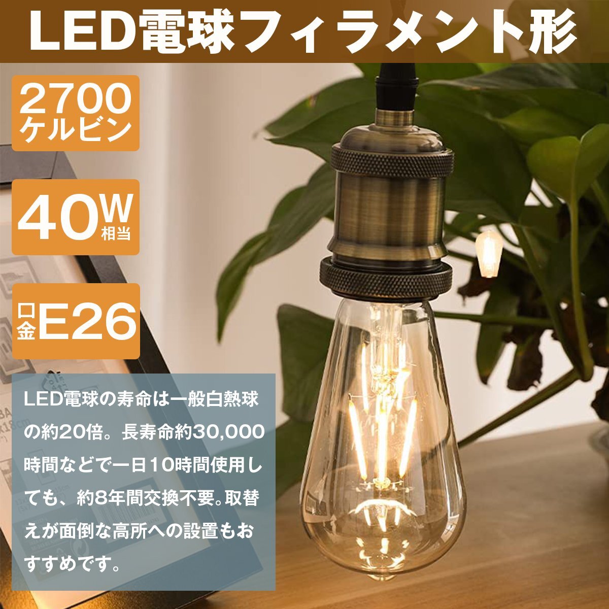 『6個 E26 エジソン電球 2700K』40W相当 ヴィンテージ LED エジソンバルブ エジソン 電球 フィラメント クリア 広配光 電球色
