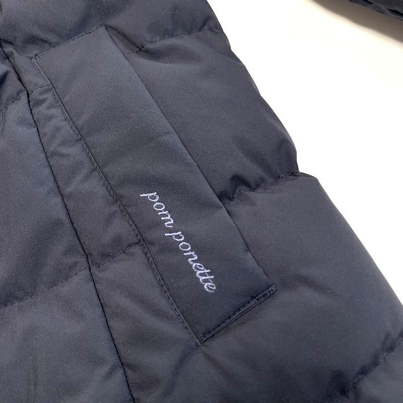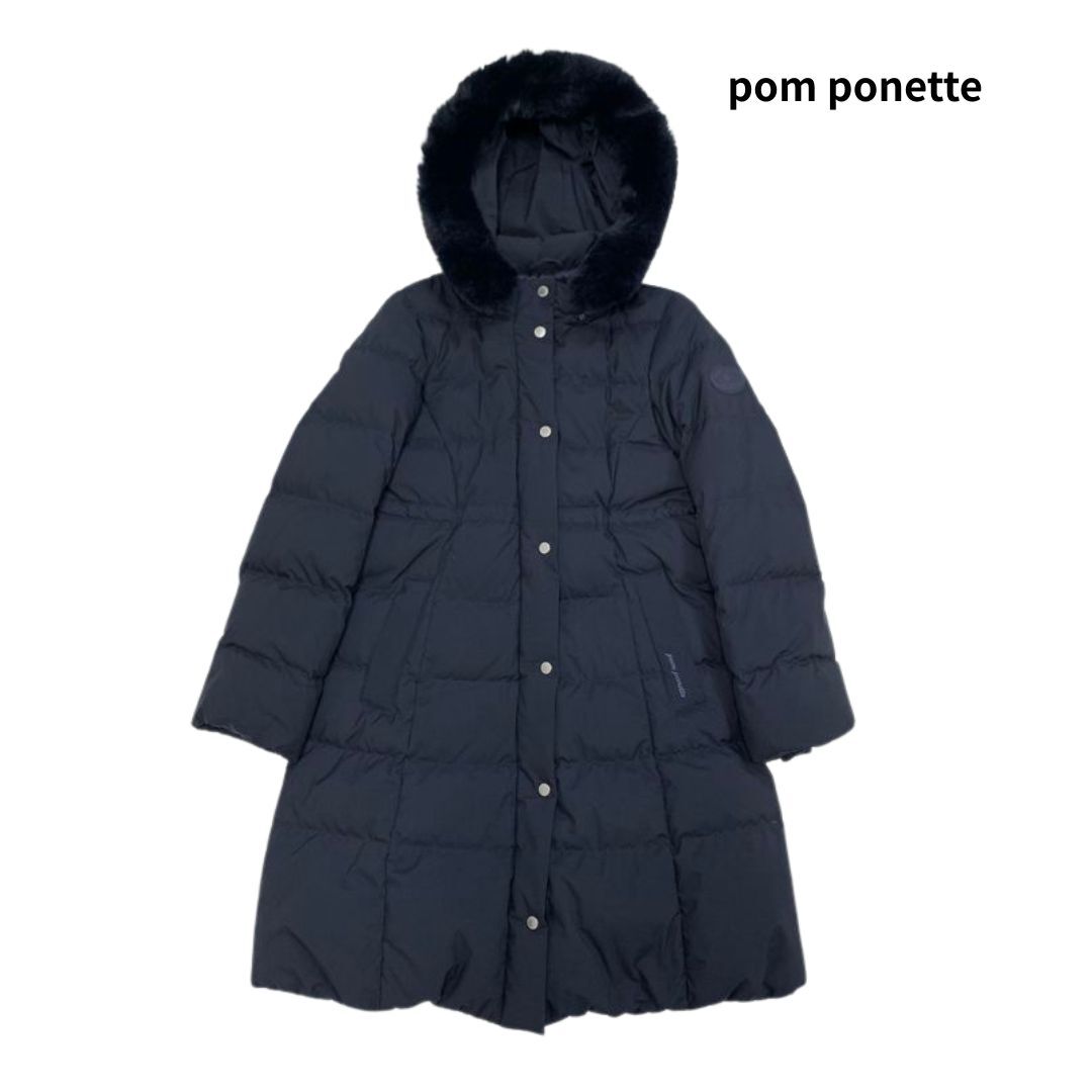 【美品】クリーニング済 pom ponette ポンポネット ファー付 フード ロングダウンコート ネイビー M(150)/ロングコート ダウン ジャケット